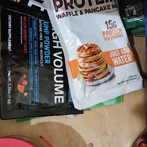 They included a few extra individual samples which is great. I am excited to try the pump powder, but the protein powder broke open and spilled all over during shipping.