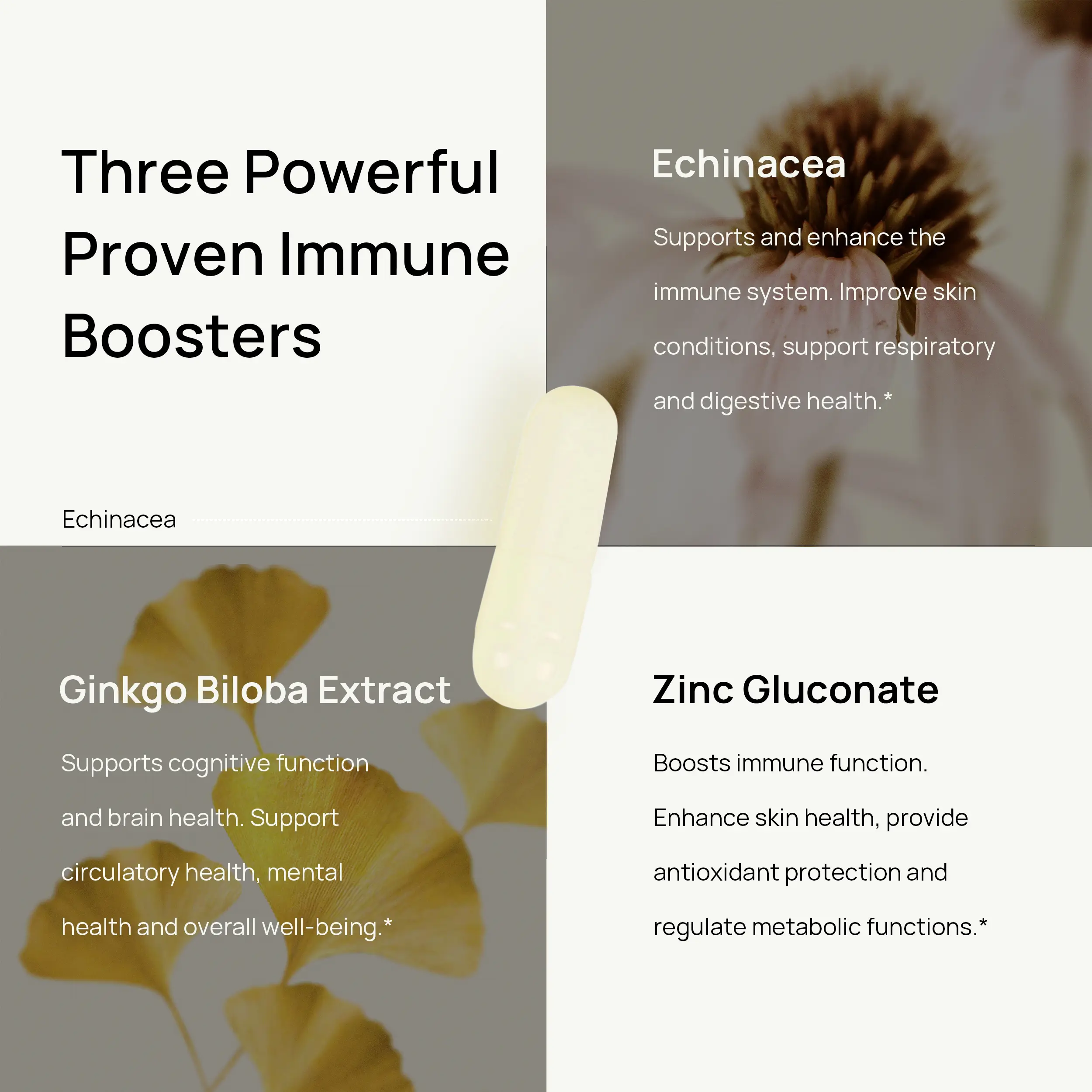 ·Natural Herbal Formula: Crafted with a blend of Echinacea Extract, Zinc Gluconate, and Ginkgo Biloba Extract, this formula provides essential nutrients that your body needs to stay healthy and resilient.