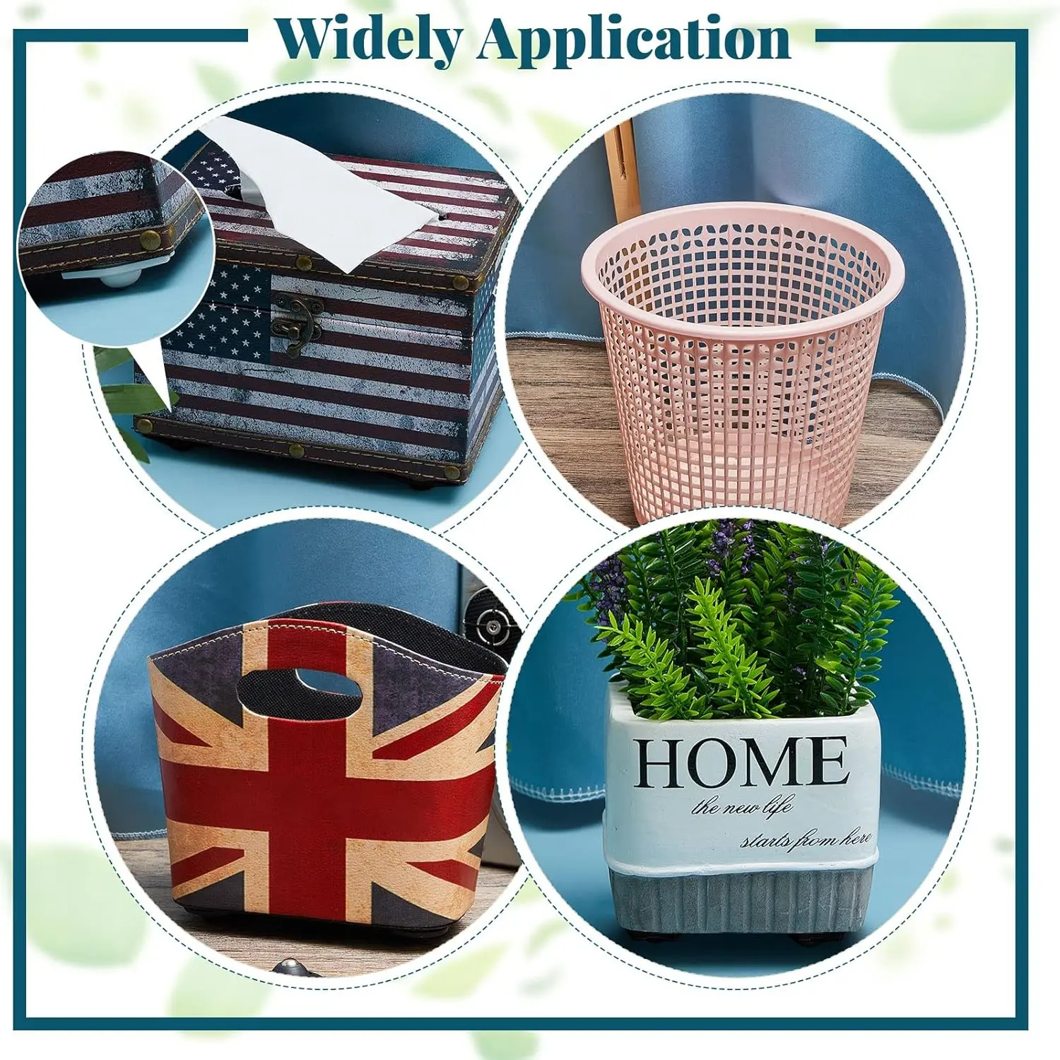 The mini castor wheels can be applied to many occasions, such as kitchen, living room, bedroom, study and so on, you can stick them to the box, plates, trash can and other items.