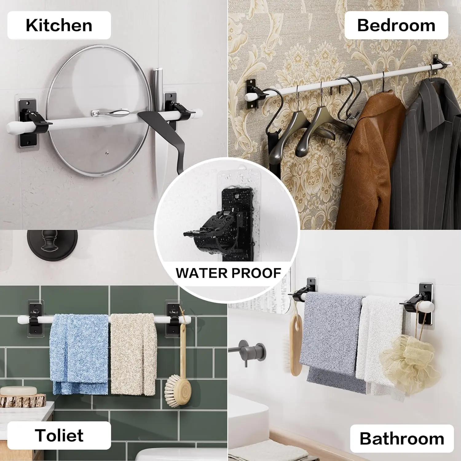 ·【Multi-Use Brackets with Versatile Transparency for Diverse Décor Styles】- Ultra Stick Instant Bonding design does not require curing stage. The transparent design makes these self adhesive curtain rod holders almost invisible matches with any home decor and atmosphere utility of living room, bathroom, kitchen, shower, bedroom, college dorm, garage, RV, apartment, good performance in both indoor and outdoor. In addition, you can also hang small accessories such as hats, umbrellas, and towels