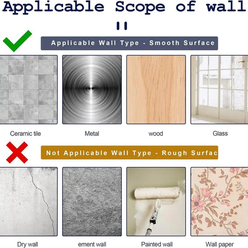 1. Choose the smooth and clean wall surface, theadhesive layer can be fully contacted with the wallsurface, making it stick firmly.2. Stick the holders on the wall, then wait for 5-10 hoursbefore placing the curtain rod or hanging items.