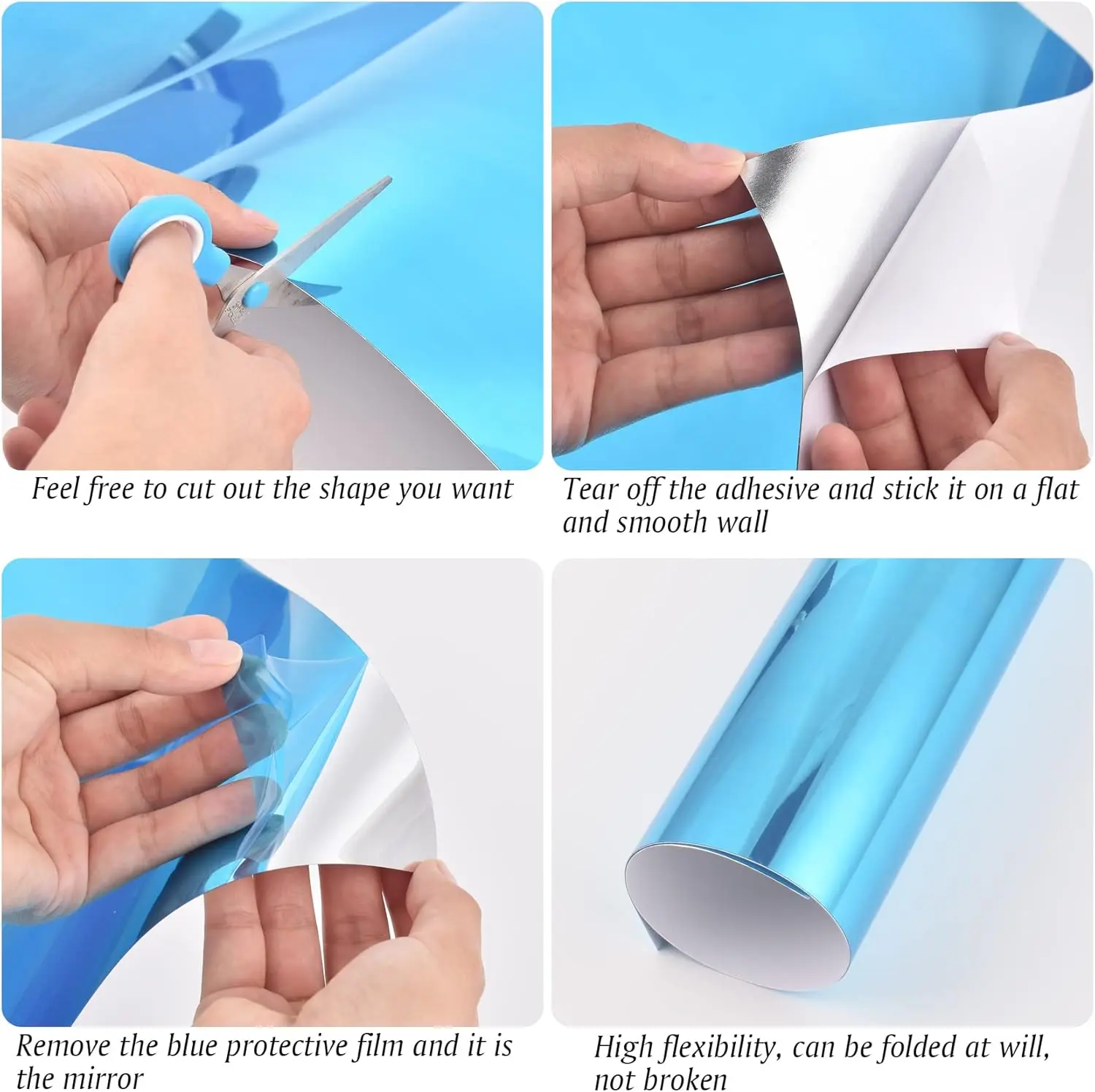 ·Easy To Use - Easy to use, simply cut to size, peel off the protective film when the project is complete to reveal true shiny mirrored surface! Peel the back for the adhesive sticker!
