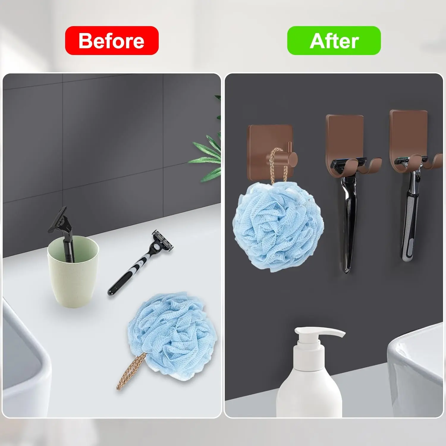 【304 Stainless Steel Shower Hooks】These razor holder for shower are made of of 304 stainless steel, , anti & rust, resist daily to ensure you can use them the wet condition including the shower