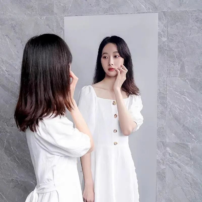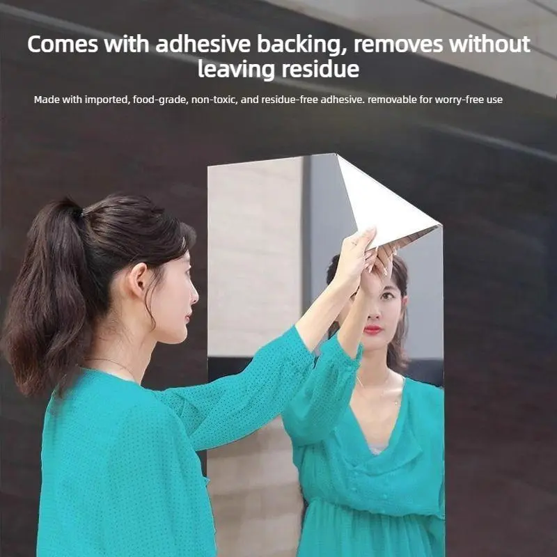 Self-adhesive mirror sticker with backing tape, 20 × 40 inch, soft glass mirror for self-service/glass doors, home use, full-length mirror, Instagram‑style bedroom reflective film