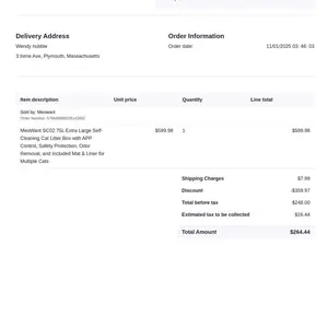 Easy to Install and Clean: Tool-free setup and disassembly. Just power on, let it self-check, and add litter. One-click emptying for hassle-free cleaning. Washable body (base excluded). Clean the interior every 1–3 months and replace the liner every 3–5 days.