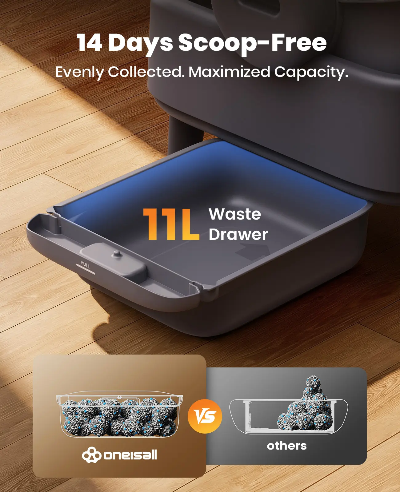 Oneisall Automatic Self-Cleaning Cat Litter Box | APP Control, 11L Large Waste Drawer, 14 Days Scoop-Free, Easy to clean, Easy to disassemble, Weight & Safety Sensors, Ultra-Quiet, Leak-Proof, Safety Sensors and Large Open Top,For Medium Cats & Kittens