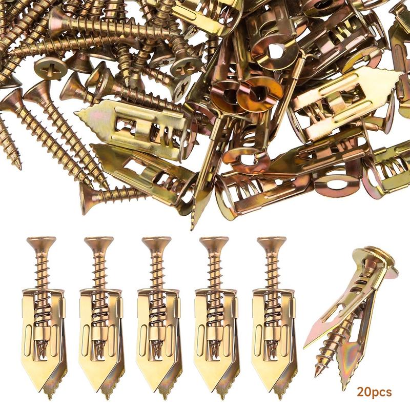 【Material】The surface of the product is plated with yellow zinc, which is firm, wear-resistant and not easy to oxidize. The screw is made of heavy steel, which is strong and rust-proof. When you tighten the screw, the ribbed anchor's fins expand on two opposing sides, enhancing gripping power. They exhibit continuous folding capabilities, toughness, and resistance to impact.