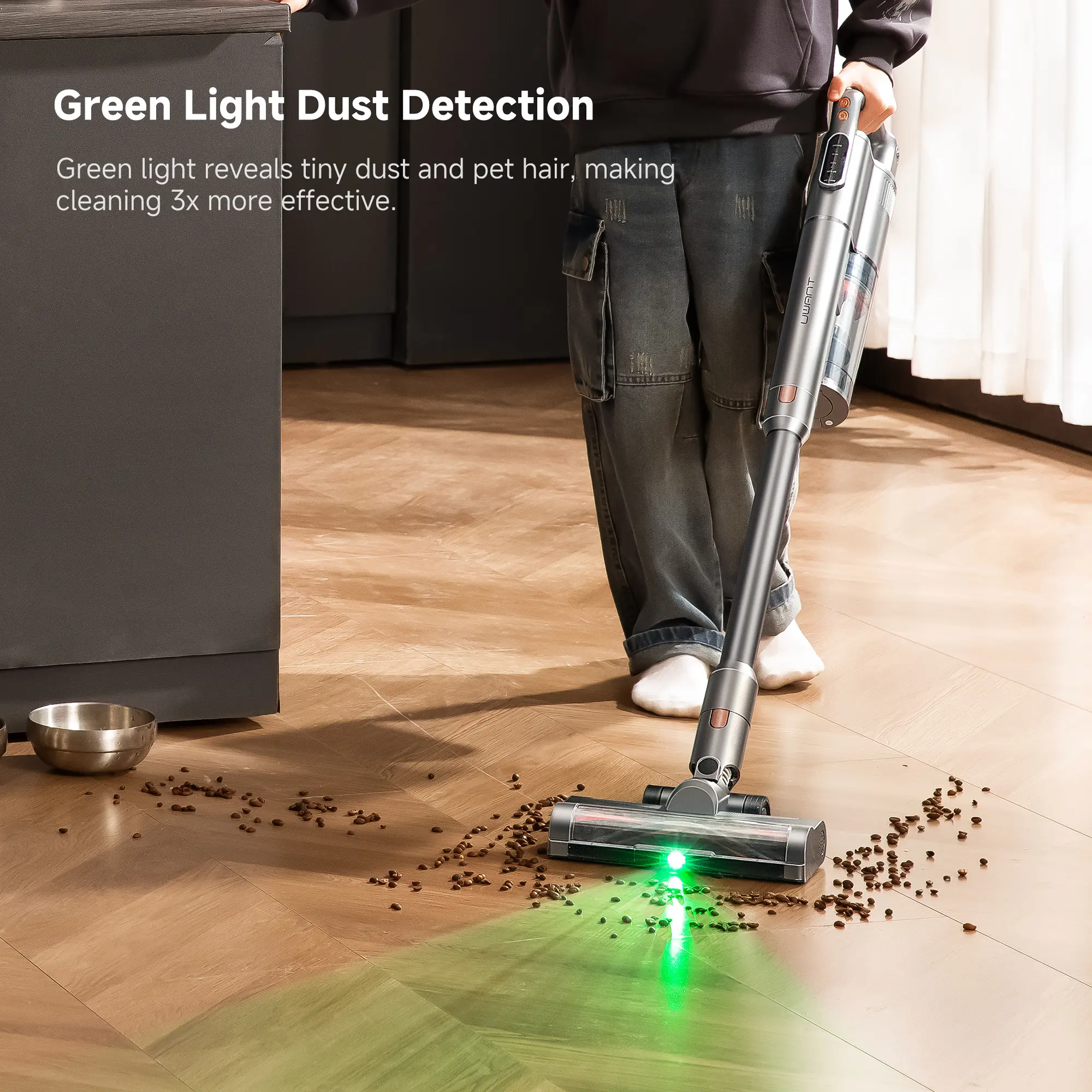I have two dogs and this thing makes cleaning way easier. The self-empty feature means I’m not touching pet hair or dust at all. The green light helps me see all the hidden fur on my floors. Super satisfying to use.