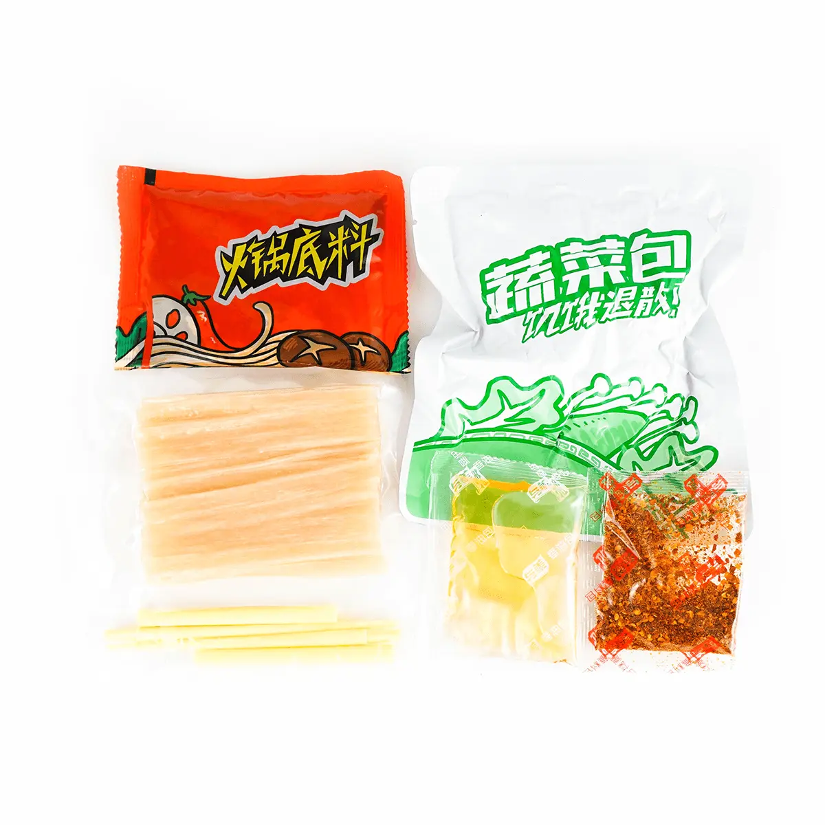 ·Vegetable oil, Fungus, Sesame oil, onion, lotus root, Konjac, Potato , Pink belt