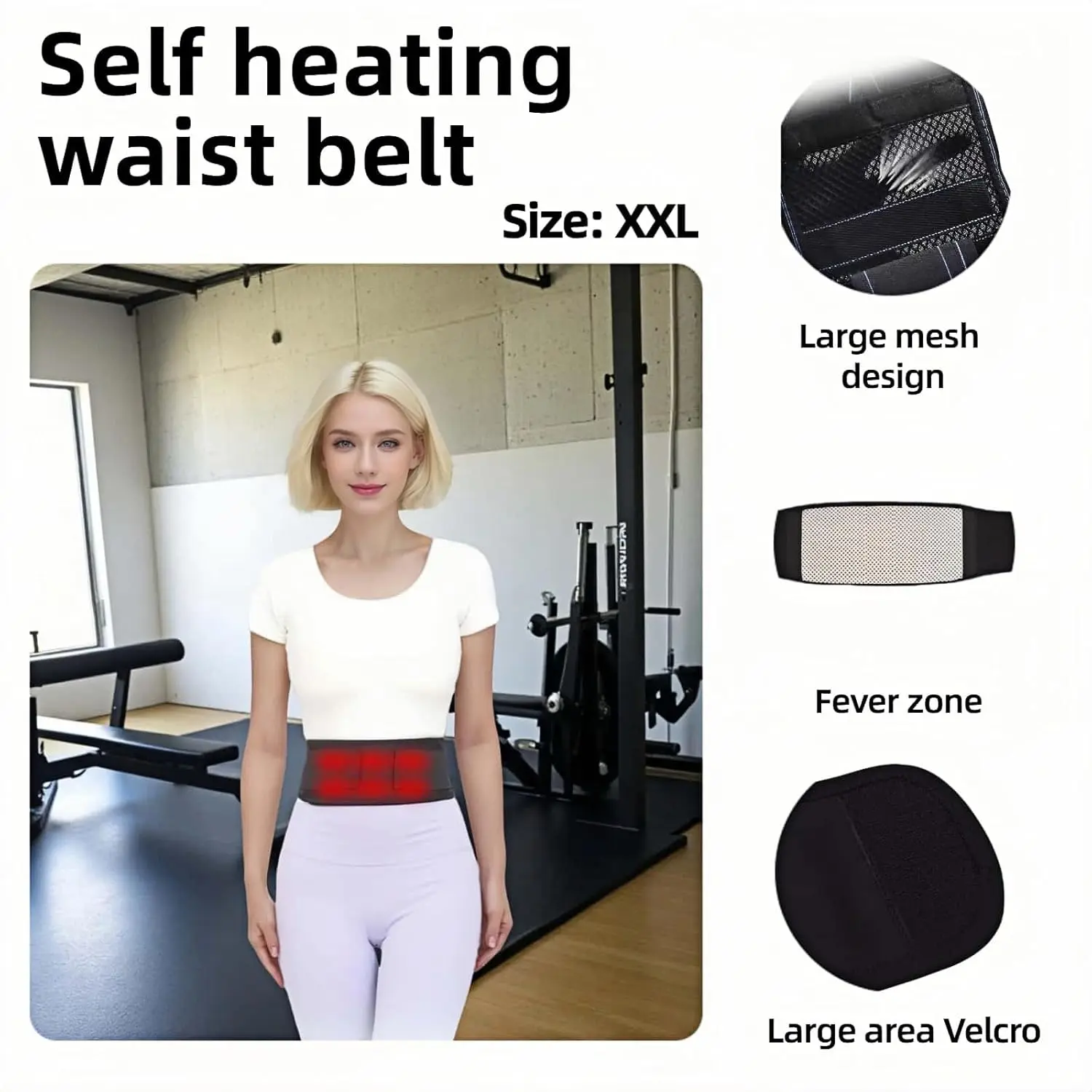 ·Experience soothing relief with this self-heating waist support belt, designed for comprehensive back and posture support. The XXL size accommodates waist measurements of 40-44 inches (100-110 cm), featuring a generous 47.24-inch length for full coverage. The innovative mesh design promotes breathability while maintaining warmth in targeted areas. This support brace incorporates a dual-adjustment system with large Velcro areas for secure, customizable compression. The belt's ergonomic design includes a fever zone that helps maintain therapeutic warmth, while the breathable fabric ensures comfort during extended wear. Perfect for those seeking lower back support during daily activities, this brace combines firm support with heating properties. The belt's front-to-back design provides balanced compression, with a narrower front profile for comfort and wider back support where needed. For optimal results, wear over a thin base layer for 15-40 minutes to experience the warming effects. Suitable for use during work, exercise, or daily activities, this support belt offers reliable stability without restricting movement.