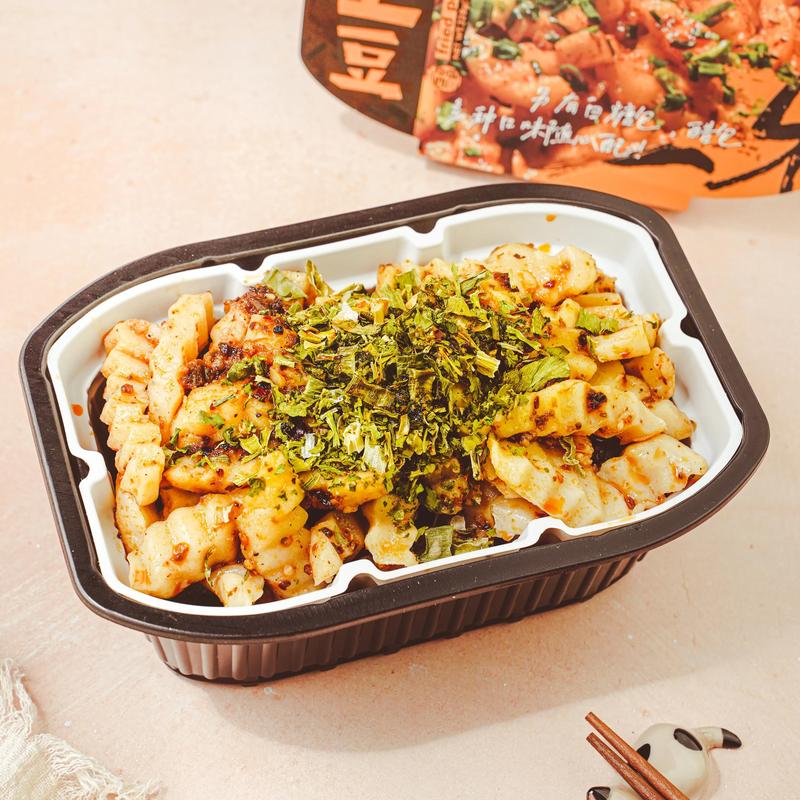 ·Step1: Take out the seasoning bag in the boxStep2: Take out the inner box and pour in the potatoes (Do not put in the seasoning bag at this time)Step3: Tear and develop the hot package plastic package, put it into the lower box, and add cold water just past the heating bag. (only add cold water)Step4: Close the lid quickly. After heating for 15minutes, open the box cover, add the package and stir evenly