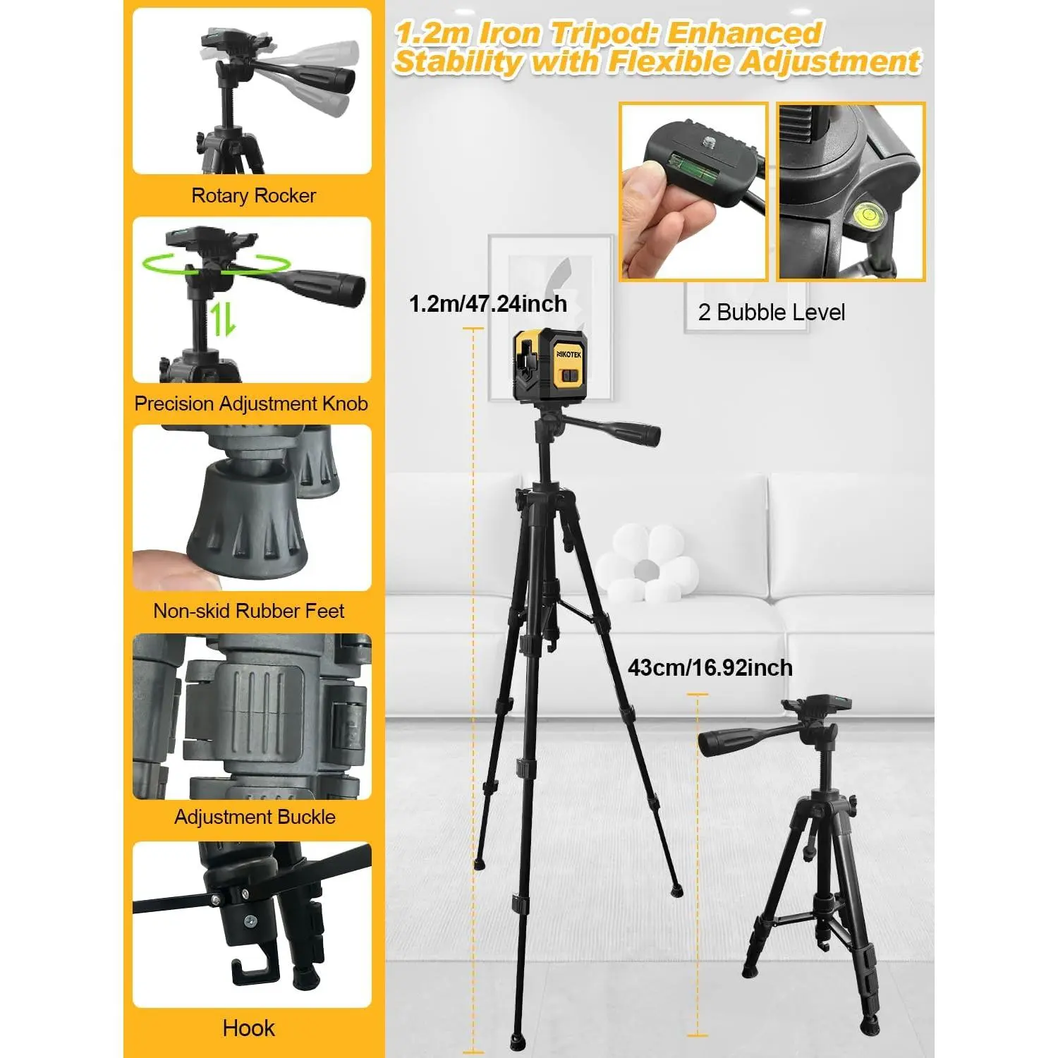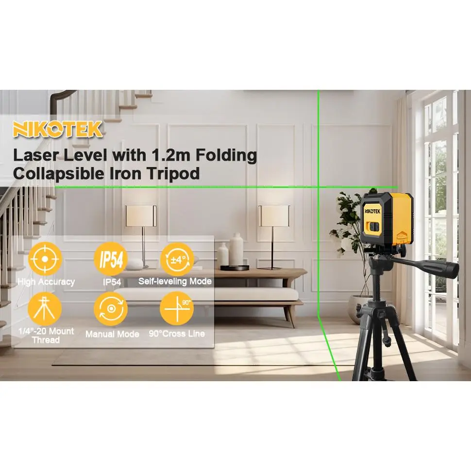 NIKOTEK Green Laser Level with Iron Tripod