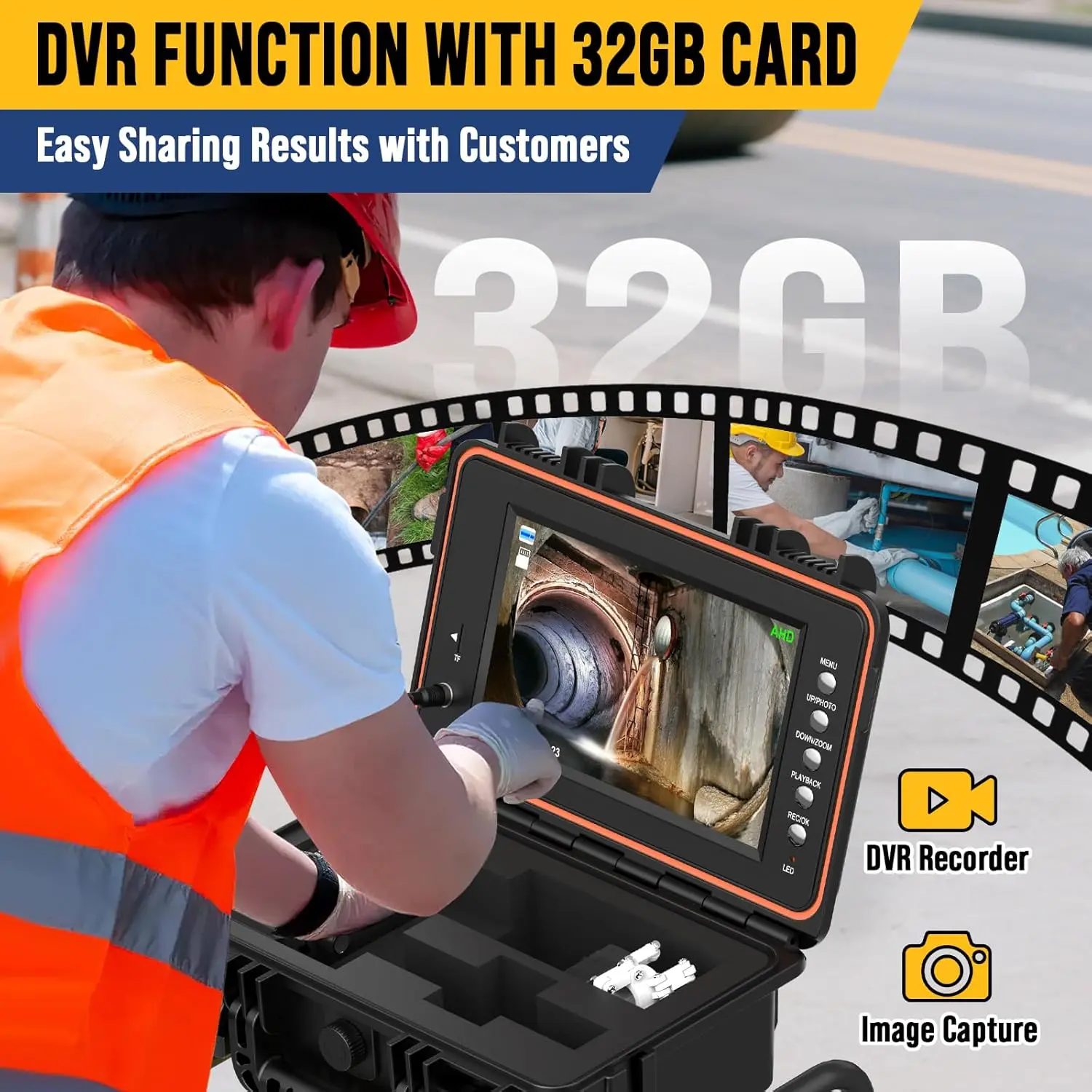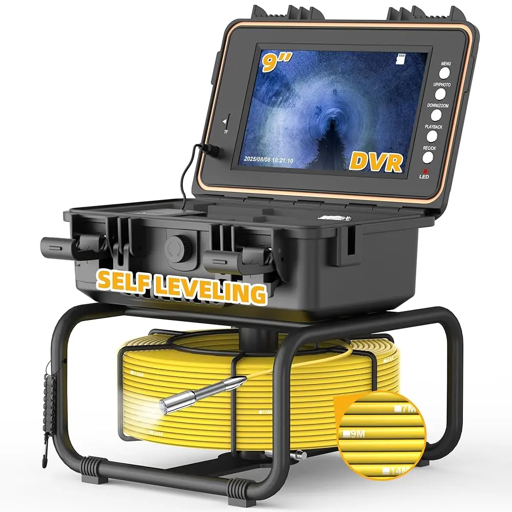 ·9” IPS HD Screen & DVR Function – Capture & Share Evidence: No more struggling with tiny, dim screens. The 9-inch IPS HD display gives you a bright and clear view, even outdoors. The built-in DVR function and 32GB memory card let you capture, store, and replay inspection videos for analysis or client sharing. Ideal for plumbers, home inspectors, and construction professionals who demand visual proof and detailed diagnostics.