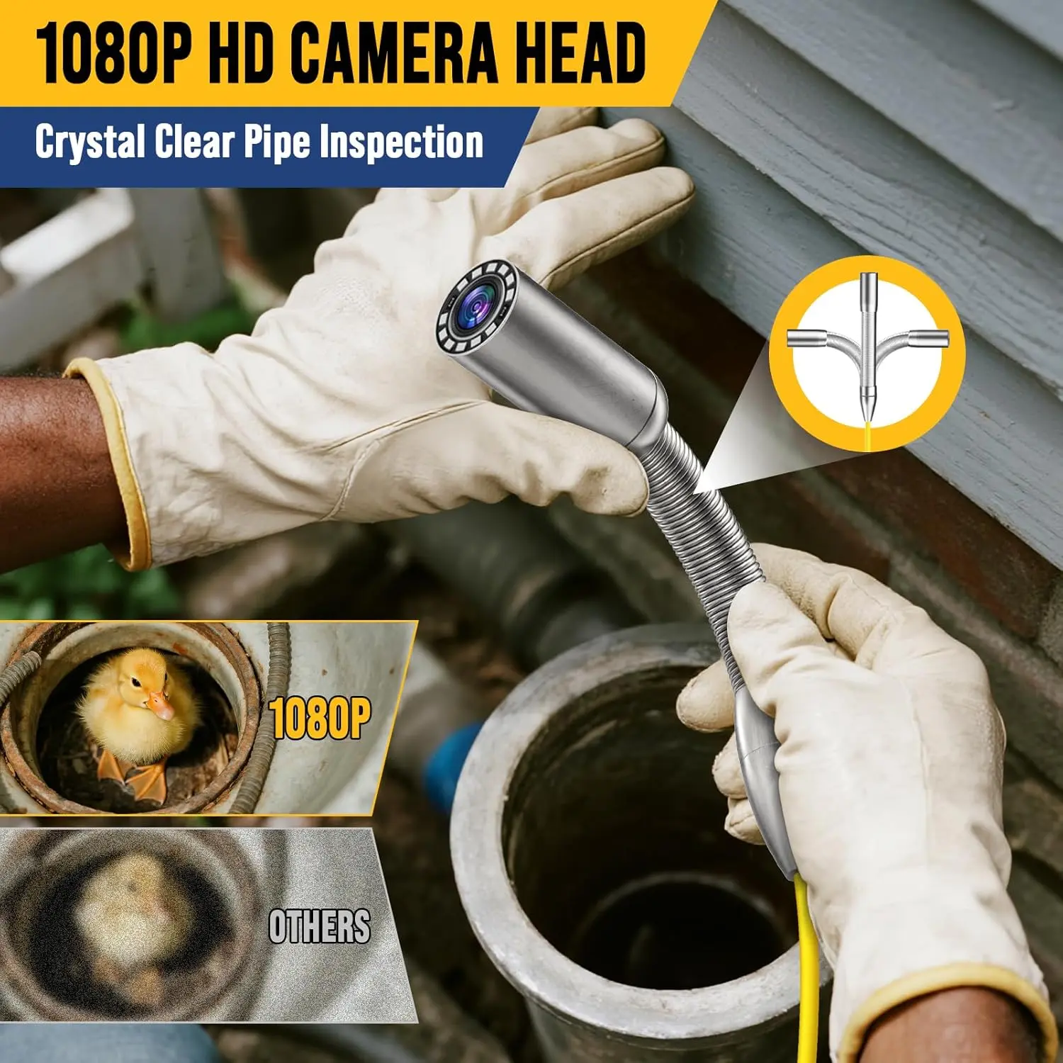 ·Self-Leveling 1080P Sewer Camera – Upright View, Professional Results: Say goodbye to upside-down or unclear footage! This self leveling sewer camera automatically adjusts orientation to deliver crisp, upright 1080P visuals every time. With 12 adjustable LED lights and an IP68 waterproof rating, you can easily explore dark, flooded, or muddy pipes. Perfect for professionals needing precise inspections in sewers, drains, and plumbing systems.