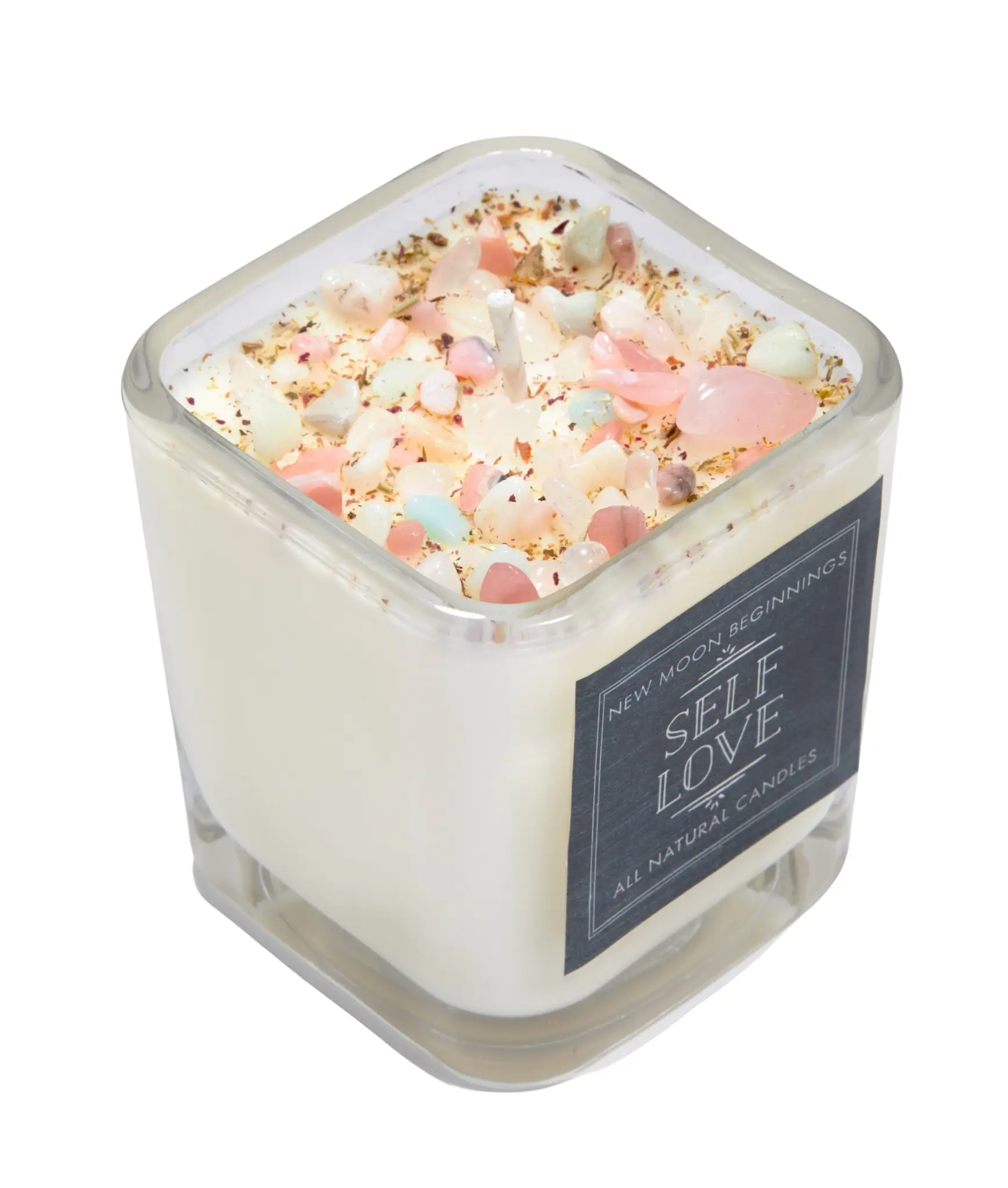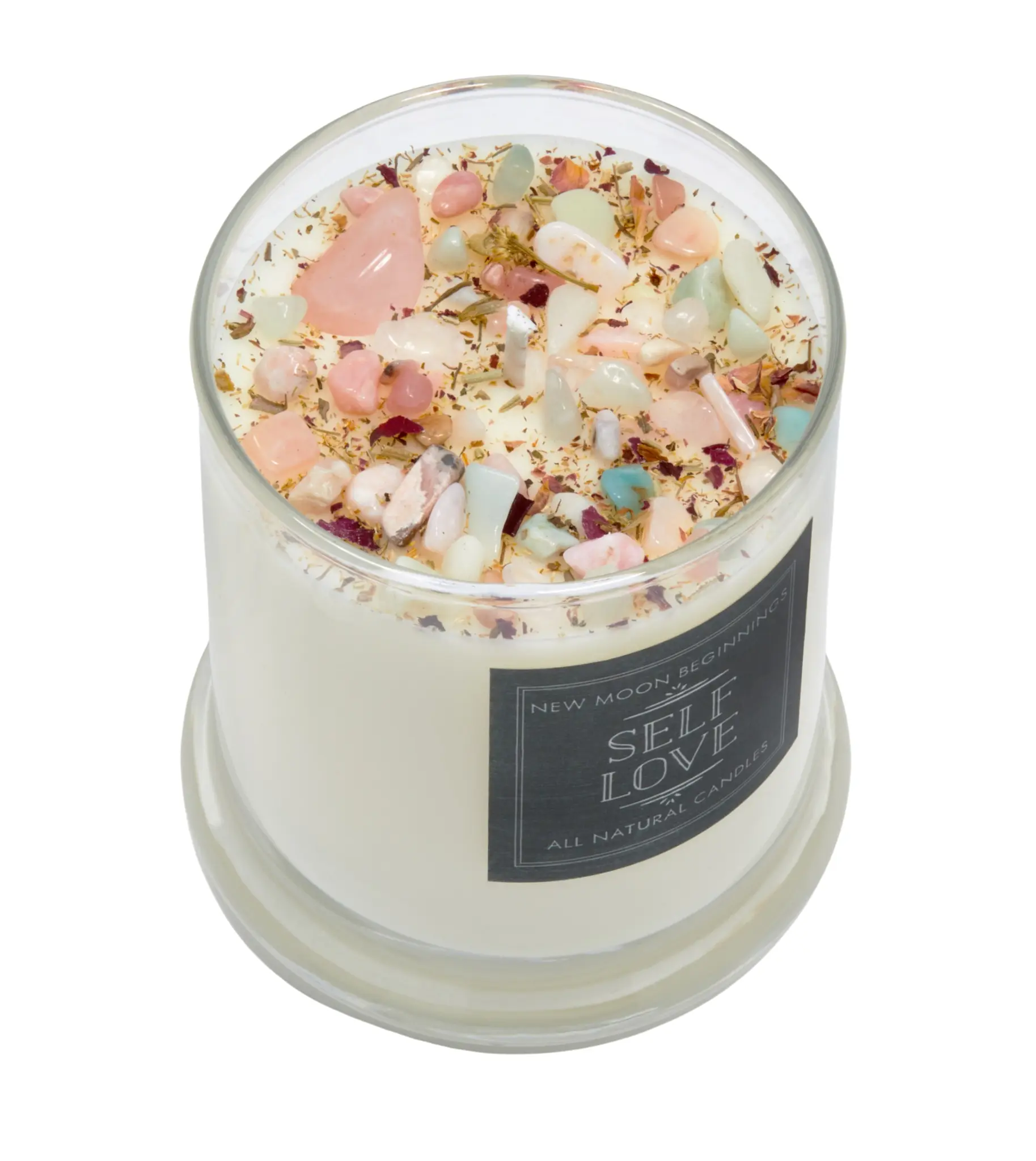 Self Love Candle - Negative Energy Cleansing - Soy Aromatherapy Candle - Handmade Candle with Crystals & Herbs - Self Care Candle