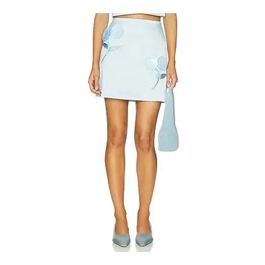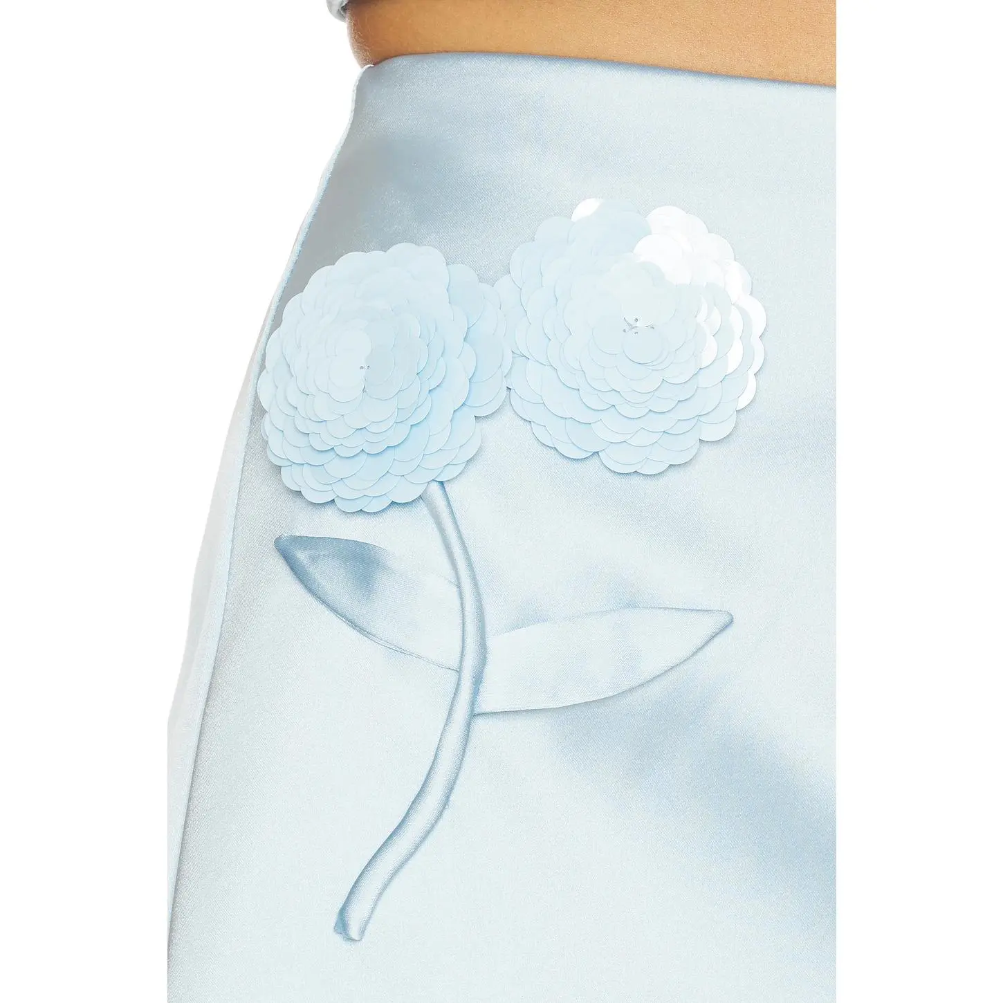 5. self-portrait Blue Satin 3d Sequin Flower Mini Skirt in Blue