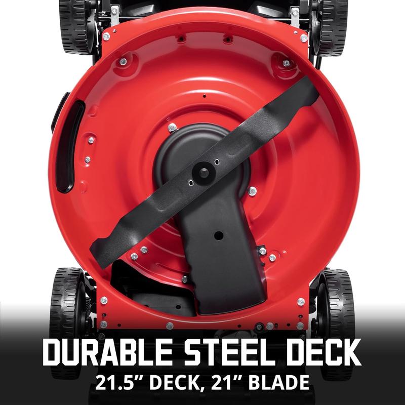 ·21-Inch Steel Deck: Rugged all-steel deck is built to last, and 21 in. superior mulching blade helps you finish mowing faster.