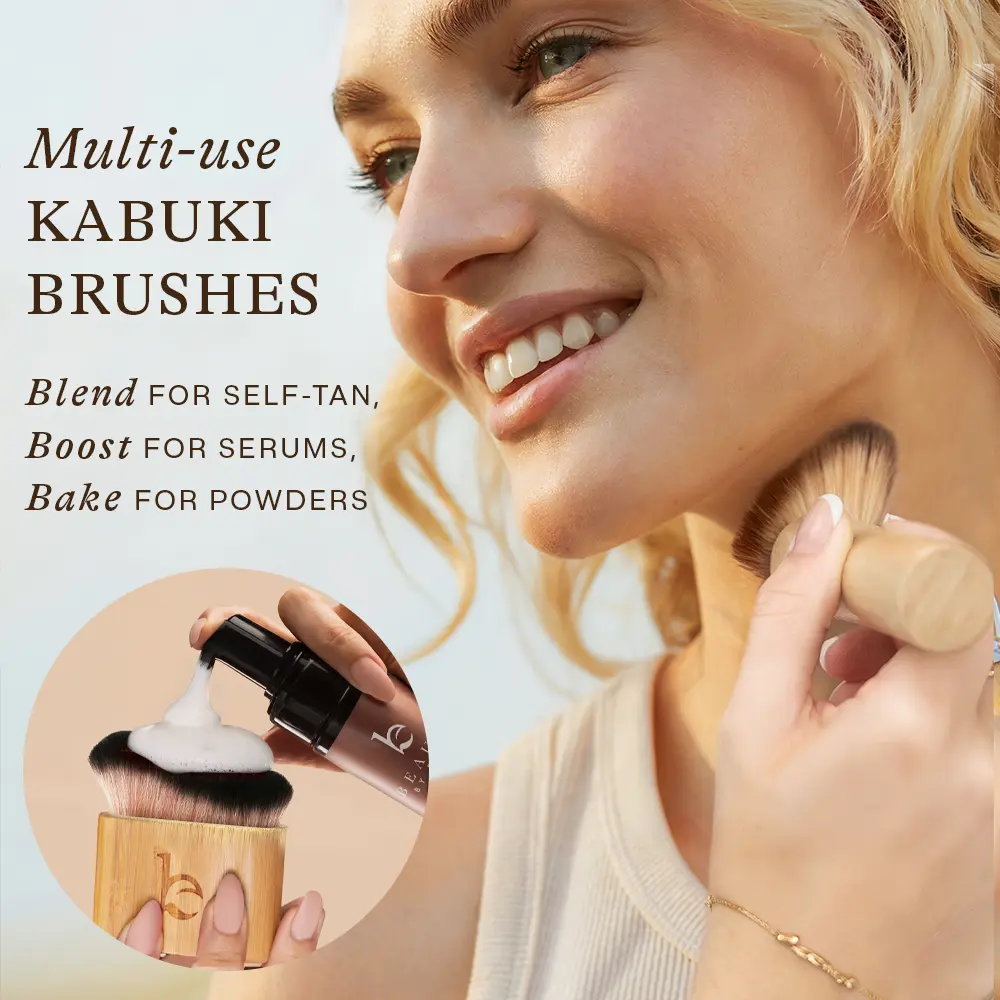 ·Use kabuki face brush to lightly blend along hairline and jawline if needed.