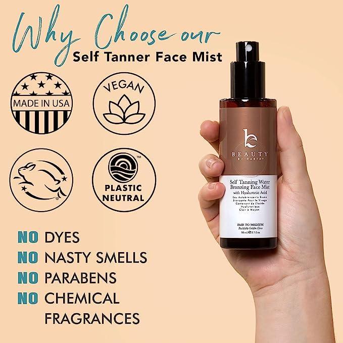 I really enjoyed this self tanning water face mist & it was a relatively easy application process. It definitely deserves 5 stars for the smell alone- it’s genuinely the first tanner I’ve used that doesn’t have that bad DHA smell! This didn’t leave any streaks, just a glowy look in the morning. 🤎