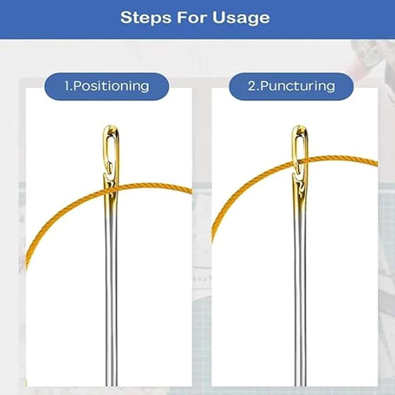 Absolutely terrible product. Not steel. The "easy to thread" feature makes it easy for the thread to CONSTANTLY fall back out, and it shreds the thread when it happens. The ads lied, tried to sew 2 layers of Felt and the heads kept breaking off the needle as I attempted to push it through.