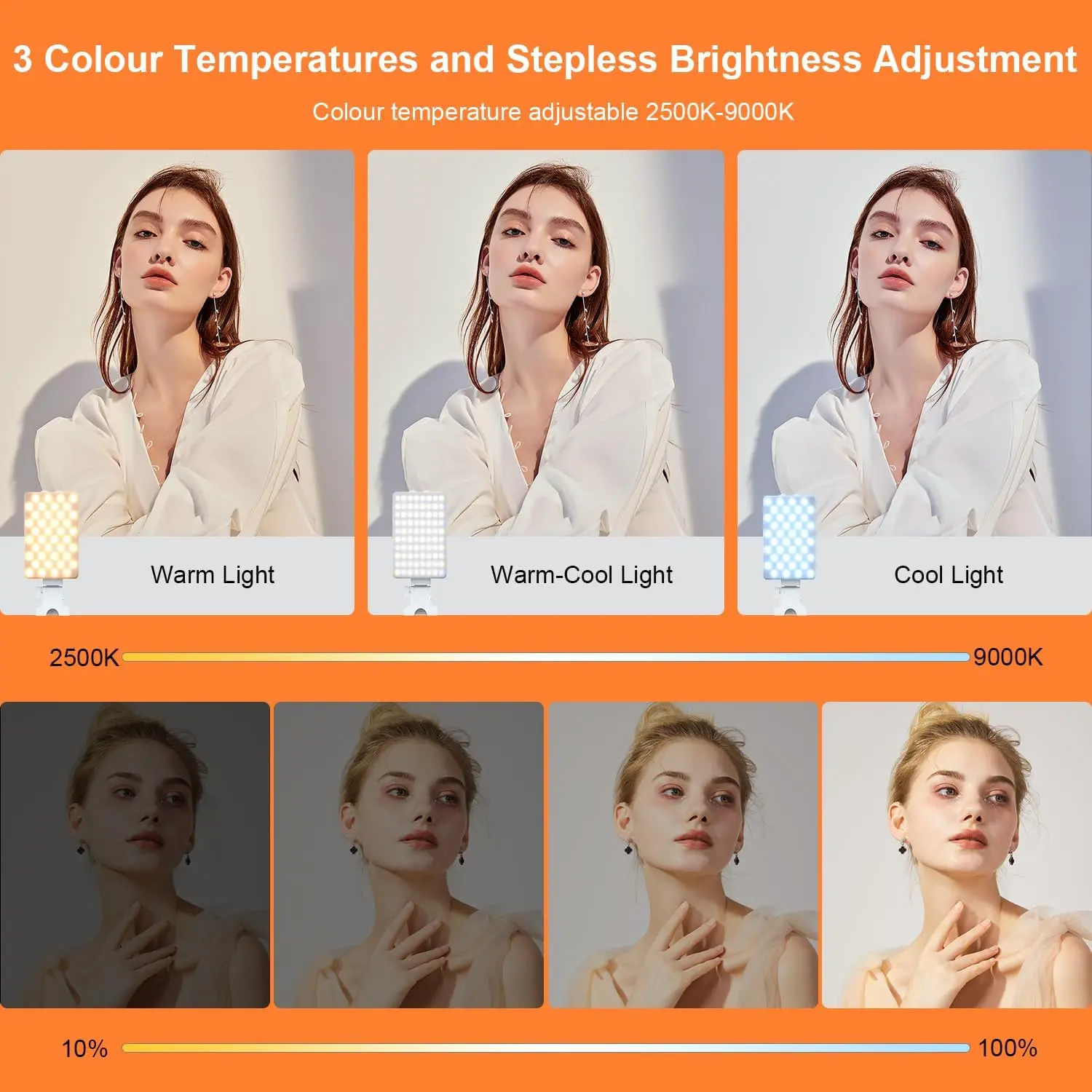 Ever struggle with bad lighting during video calls or while vlogging? This portable selfie fill light is your new best friend! Its clip-on design easily attaches to your phone or laptop, giving you bright, flattering light wherever you go. With 80 LED beads and adjustable color temperatures from warm 2500K to cool 9000K, you can create the perfect glow for selfies, live streams, or makeup tutorials. The stepless brightness control lets you dial in just the right amount of light, from subtle to spotlight. Plus, it’s USB rechargeable via Type-C with a built-in 2000mAh battery that lasts up to 100 minutes at full power—no more hunting for batteries! The wide clip and fixed clamp lock ensure it stays put, even during long video chats or busy shoots. Lightweight and compact, it fits in your bag without adding bulk. Whether you’re a content creator, remote worker, or selfie lover, this fill light brightens your moments effortlessly. Grab yours now and shine anytime, anywhere!