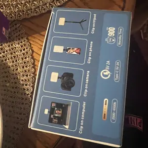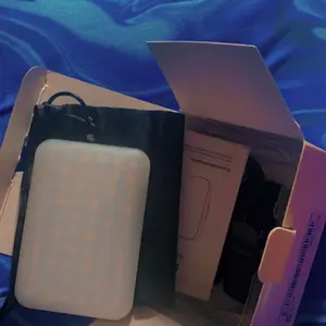 Portable light, and black clip that attaches to light. Perfect fit for iPhone or android phone. Easy buttons for different light settings. Never post another piece of content with poor lighting again!!!