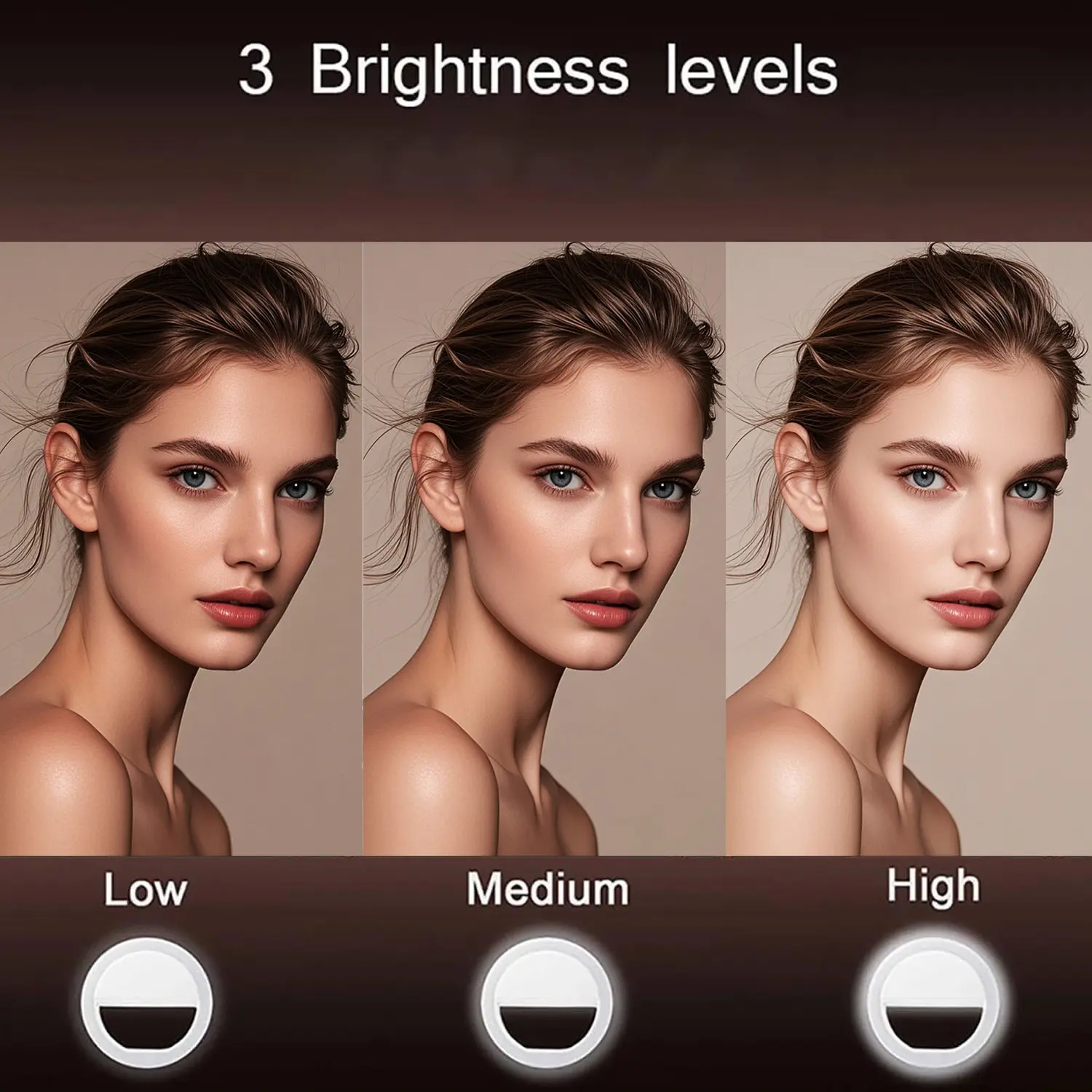 Switch between low, medium, and high brightness levels to adapt to any environment—from dim bedrooms to outdoor shooting.