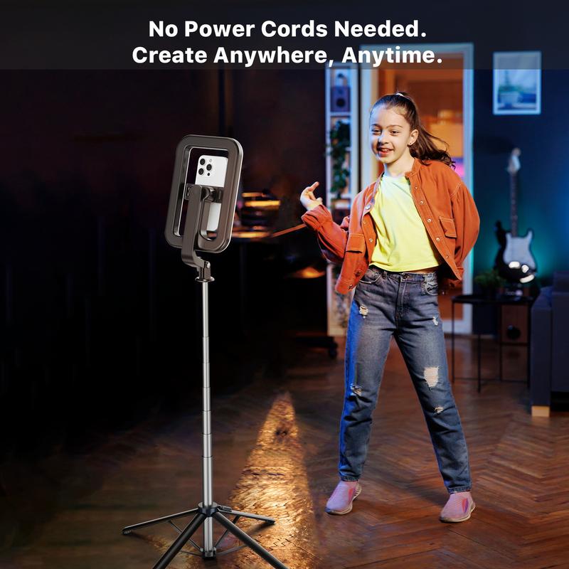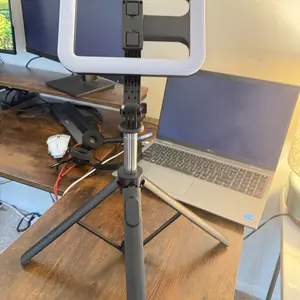 Step up your videos with this ringlight tripd. I absolutely love this product! It has a Bluetooth remote to capture pictures.