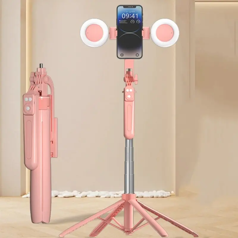 Ever struggled to get the perfect selfie or video lighting on the go? Meet your new best friend: this 70-inch selfie stick tripod with dual fill lights. Whether you’re vlogging, live streaming, or capturing memories, the adjustable height and 360° rotation let you find the ideal angle every time. The built-in dual fill lights come with three color temperatures—warm, white, and natural—so your shots always look professional, no matter the lighting conditions. Plus, the wireless remote control means you can snap photos or start videos from afar without rushing back to your phone. Made with lightweight aluminum alloy and ABS materials, it folds up easily for travel and fits right into your bag. It charges via Type-C, so powering up is quick and hassle-free. Designed to work with most smartphones, it’s perfect for content creators who want flexibility and quality in one sleek package. Inside the box, you’ll find the tripod, built-in batteries for the lights, and the wireless remote. Ready to up your selfie game? Grab this portable tripod and light combo and start shooting like a pro wherever you go!