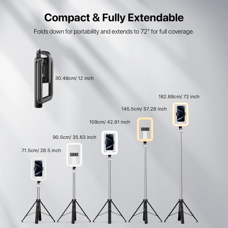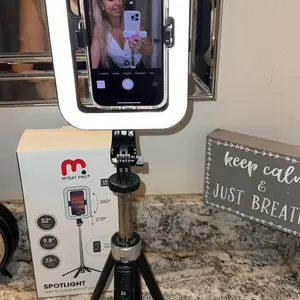 Ever struggle to get the perfect selfie or video lighting? The MyBat Pro Selfie Stick with Spotlight Tripod is here to save your shoots! This versatile gadget extends from a handy 7.6" grip to a full 47" tripod stand, letting you capture everything from close-ups to group shots. Its 360° rotatable phone clip and 270° tilt mean you can find just the right angle for your TikTok videos or scenic photos. Plus, the built-in 8" dimmable LED light offers three color modes to brighten your face or set the perfect mood, day or night. The wireless Bluetooth remote lets you snap pics or start recording without rushing back to the phone, making solo shoots a breeze. Crafted from rust-resistant aluminum alloy, it’s lightweight yet sturdy, fitting phones from 4.7" to 7" including the Galaxy S24 Ultra and iPhone 16 Pro Max. In the box, you get the LED selfie ring light, a 72" stable tripod stand, a 360° rotating phone holder, the wireless Bluetooth remote, and a USB-C charging cable. Whether you're a content creator or just love snapping memories, this selfie stick tripod combo makes every shot shine. Ready to elevate your photo game? Grab yours and start creating with confidence!