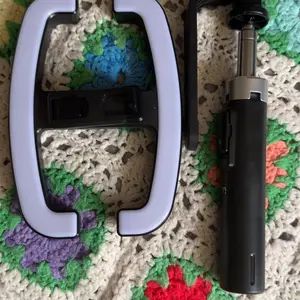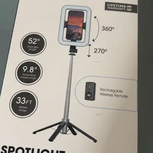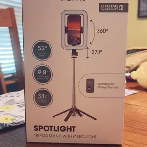 I really love this tripod it's really sturdy the light is on it so you don't need a separate light and comes with a remote to take your pictures from your phone just connect it Bluetooth