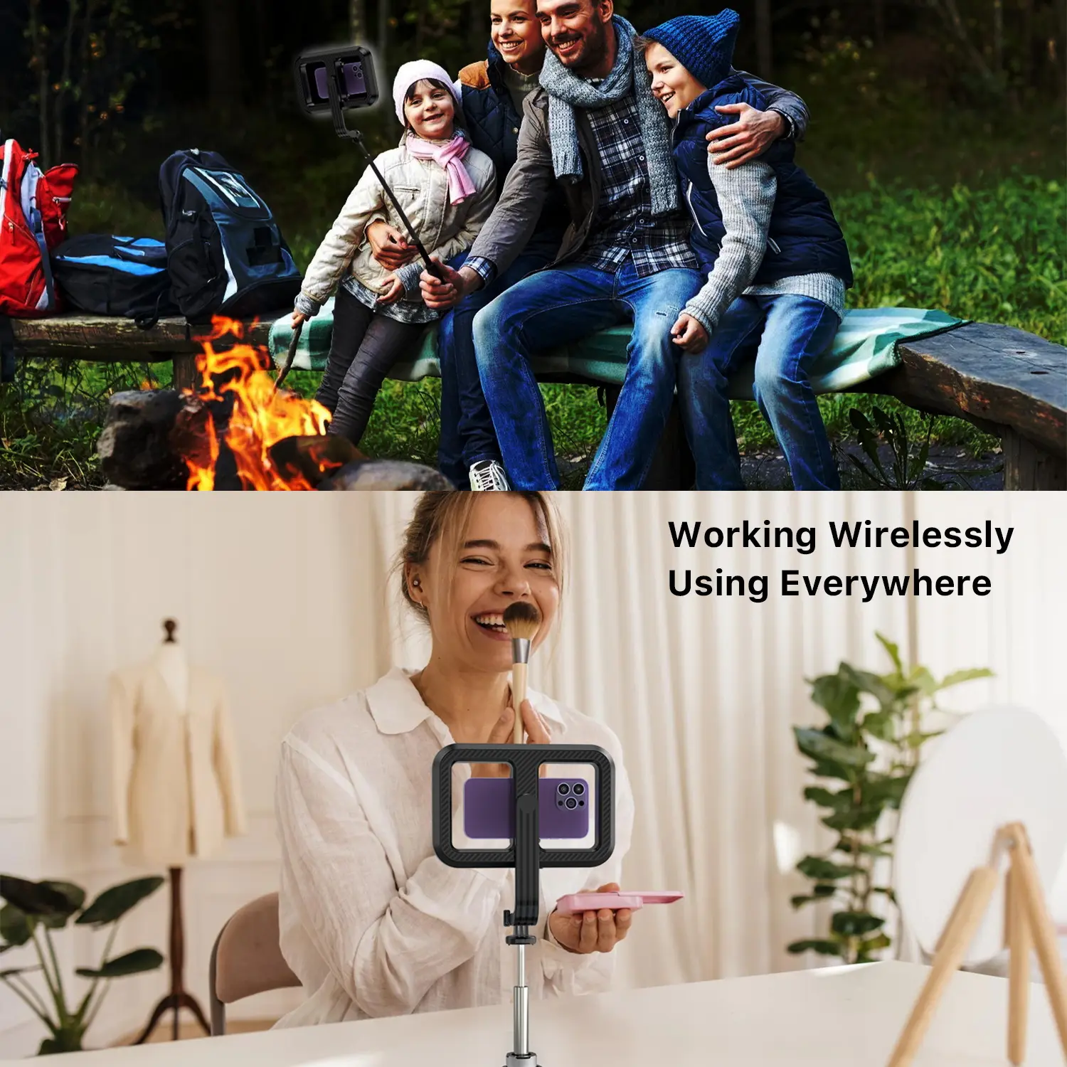 Ā·2-in-1 Design: Selfie Grip Handle & Tripod Legs