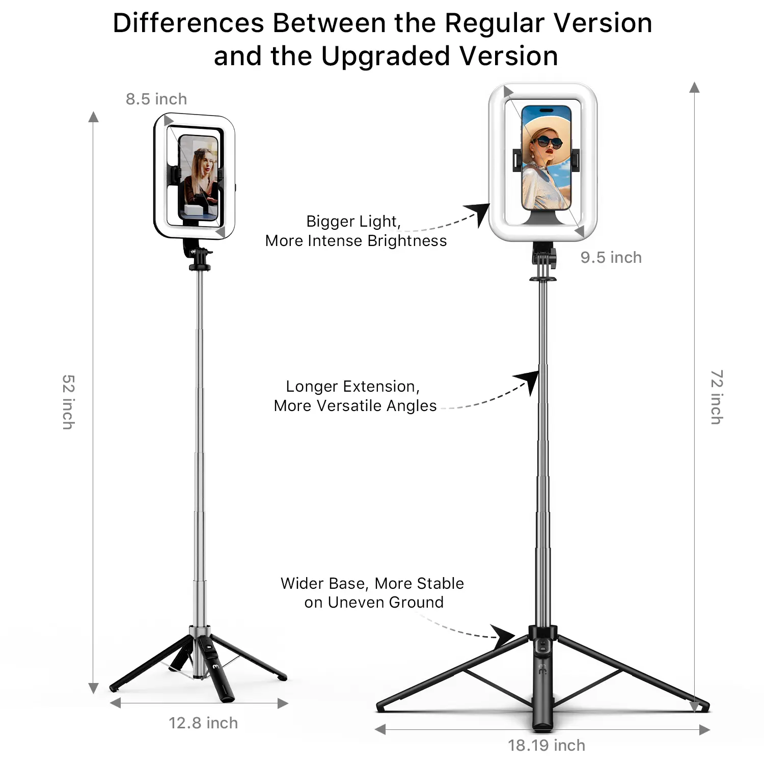 The 6 feet height extension is really what sold me. I love that I am able to use this as a tripod OR selfie stick and because the phone holder has the rotating feature, being able to film in landscape mode is top tier. The optional light temperature settings really tops everything off for me. 10/10