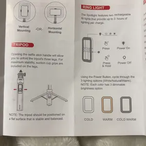Excellent selfie stick with a bright light in 3 modes. The base for the tripod stand is wide and sturdy for great use indoor or outdoor. Great buy for creators.