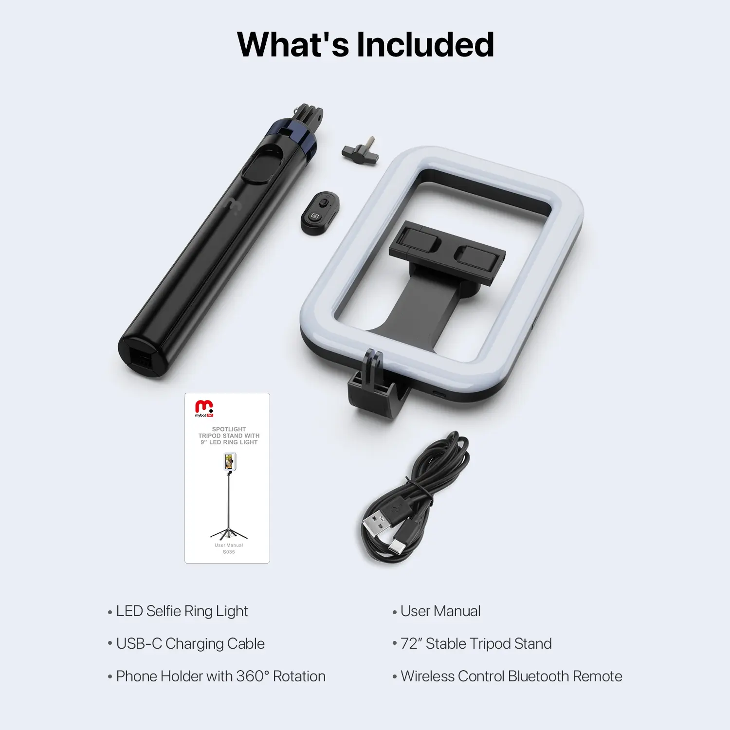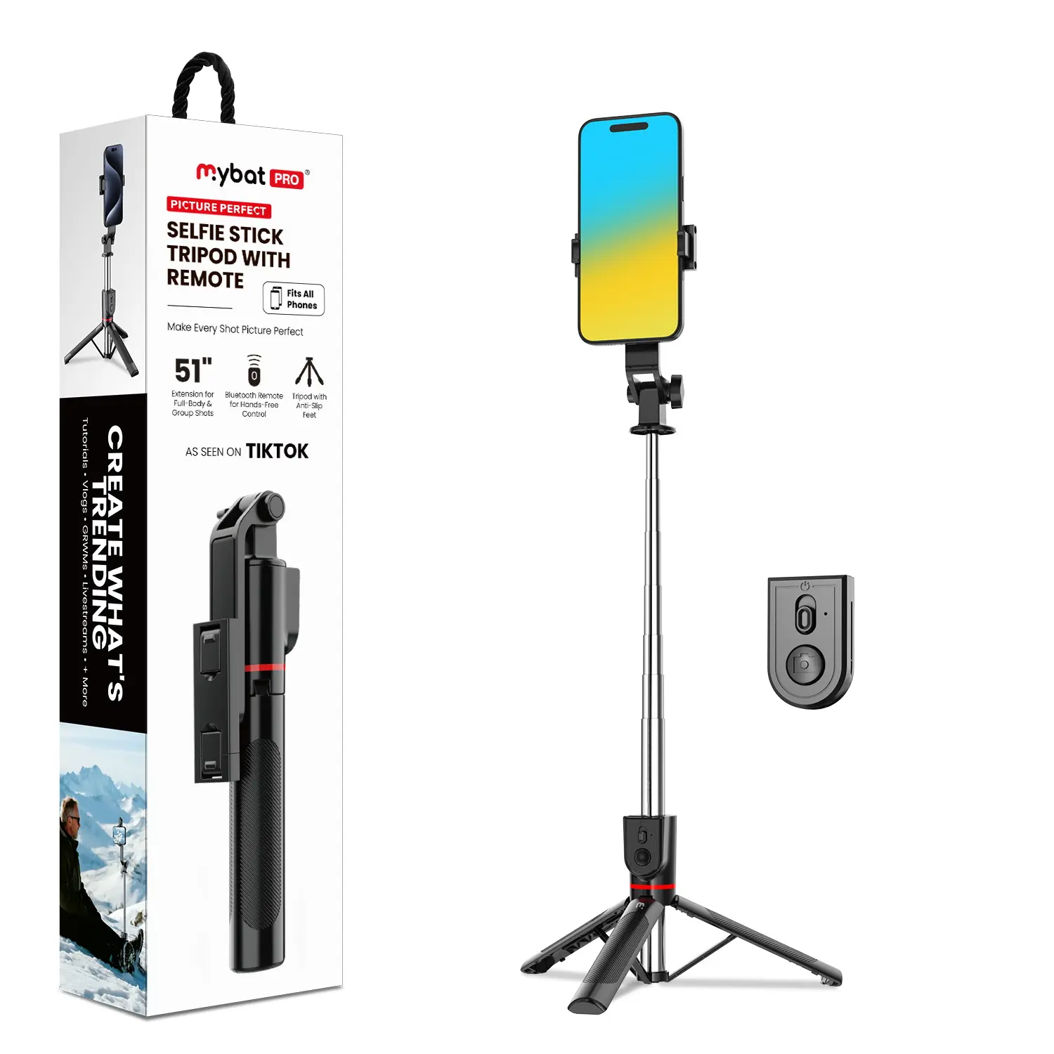 Help you take the perfect photos and videos with the Portable Tripod Selfie Stick with Fill Light from MyBat Pro!