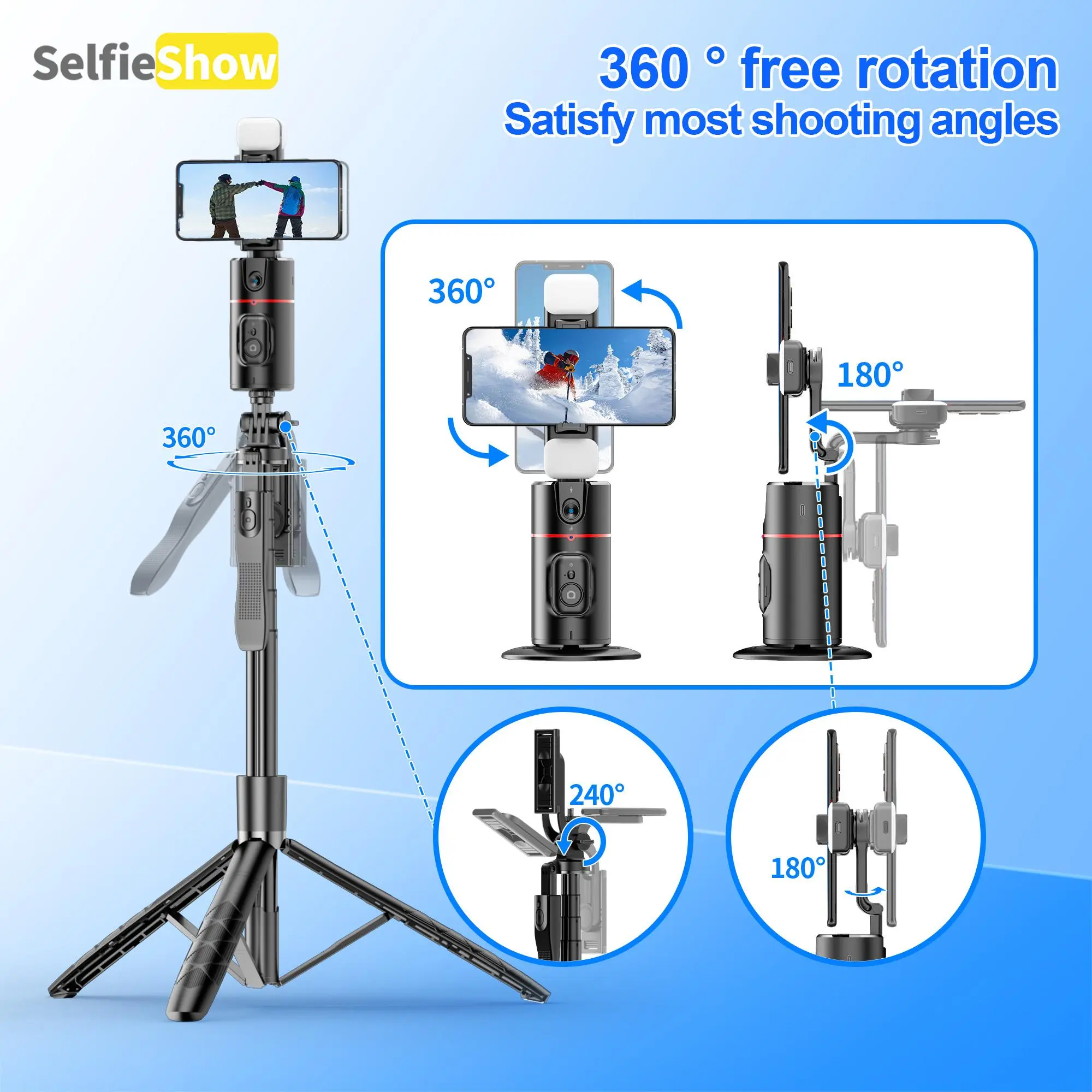 5. SELFIESHOW 360-Degree Intelligent Face Tracking Gimbal, Smart Gesture Recognition Selfie Stick with Tripod & Fill Light, Selfie Accessories for iOS & Android, Phone