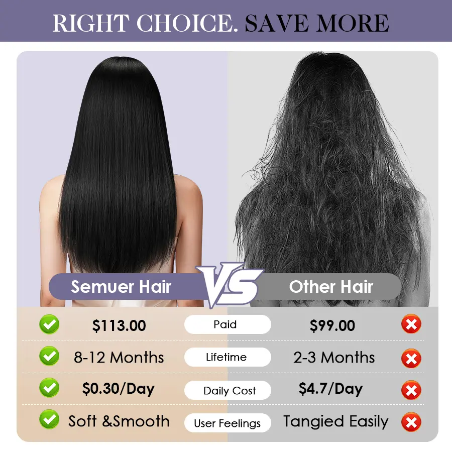 I was a little nervous because of the price BUT I love my Semuer Hair black human hair wig! It’s silky, soft, and natural-looking. No tangles, no shedding, and came true to length. The lace blends perfectly, and it’s super comfortable to wear all day. Truly high-quality and worth every penny! ⭐⭐⭐️⭐️