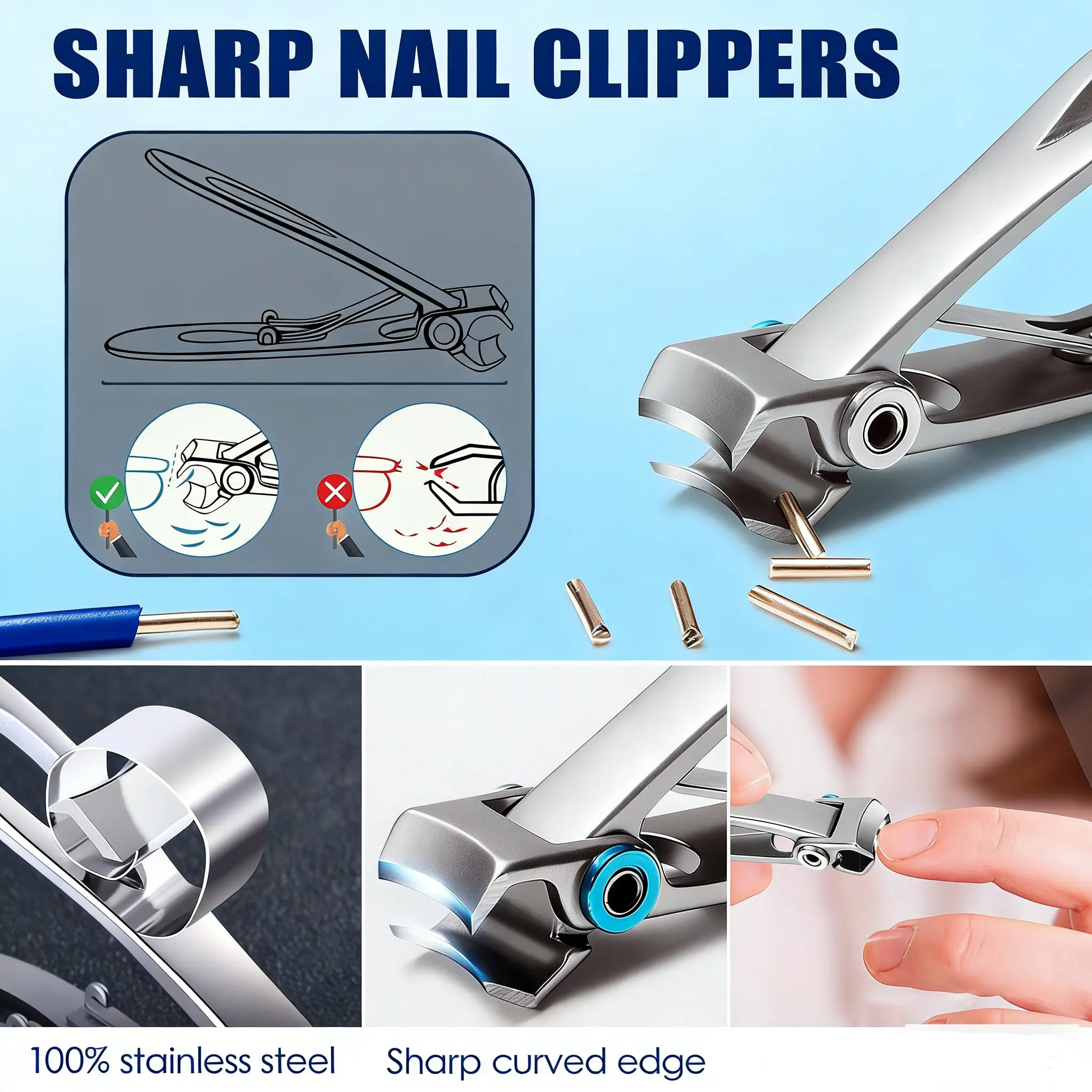 Made from stainless steel, these clippers are durable and rust-resistant. The material ensures long-lasting use. The wide jaw design accommodates thick nails effortlessly.