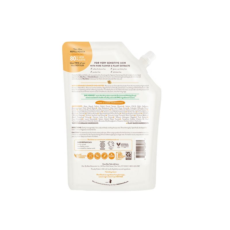 5. Babo Botanicals Sensitive Baby Fragrance Free Shampoo & Wash with Refill – Soothing Shea Butter & Aloe Vera – For Dry & Very Sensitive Skin – Pediatrician Tested – 16 fl oz (473 ml) Bottle + 32 fl oz (946 ml) Refill