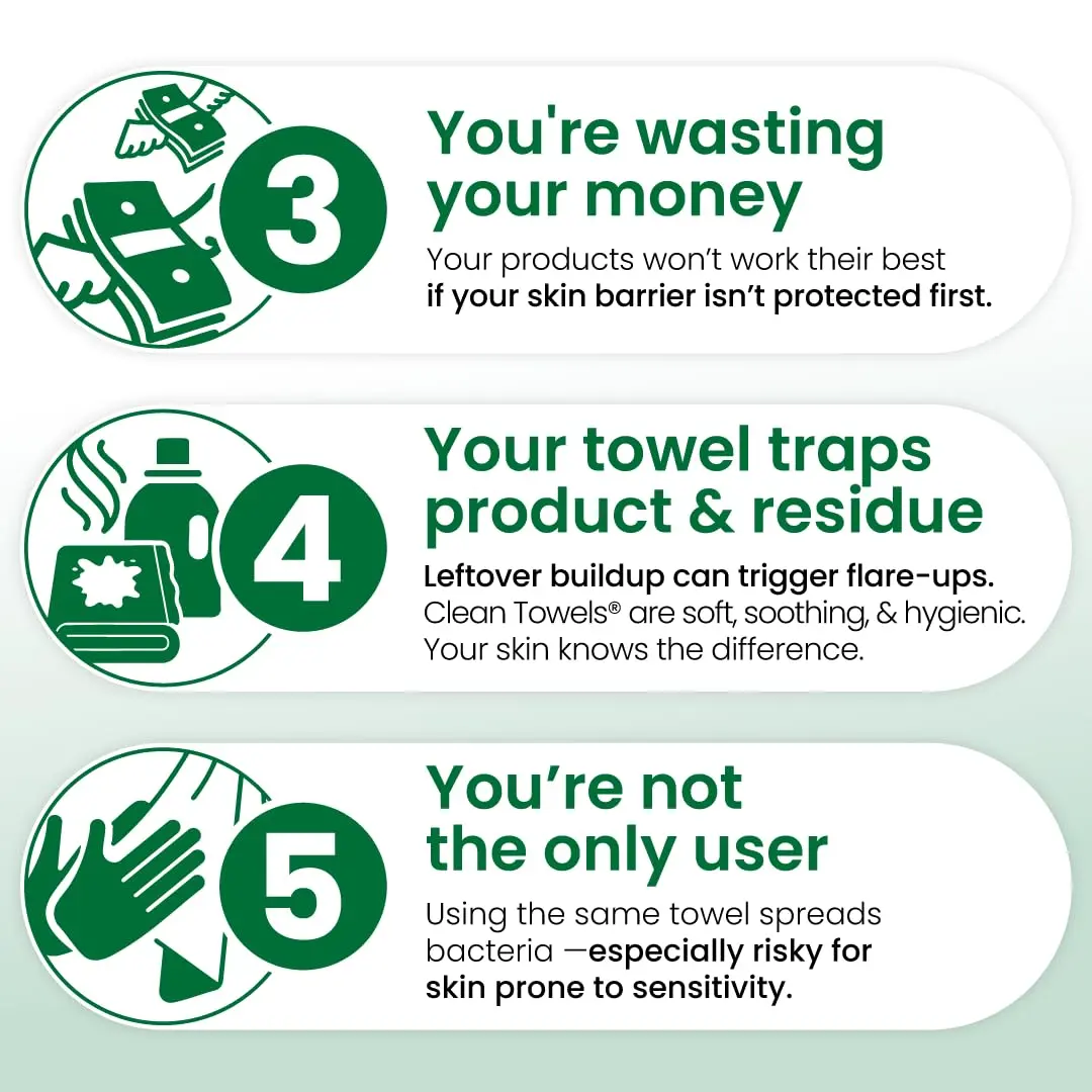 ·In a six-week clinical study, participants with self-perceived sensitive skin reported less dryness, improved comfort, and 100% agreed the towels felt gentle and non-abrasive. Perfect for daily cleansing, makeup removal, or on-the-go refreshes. 🌟