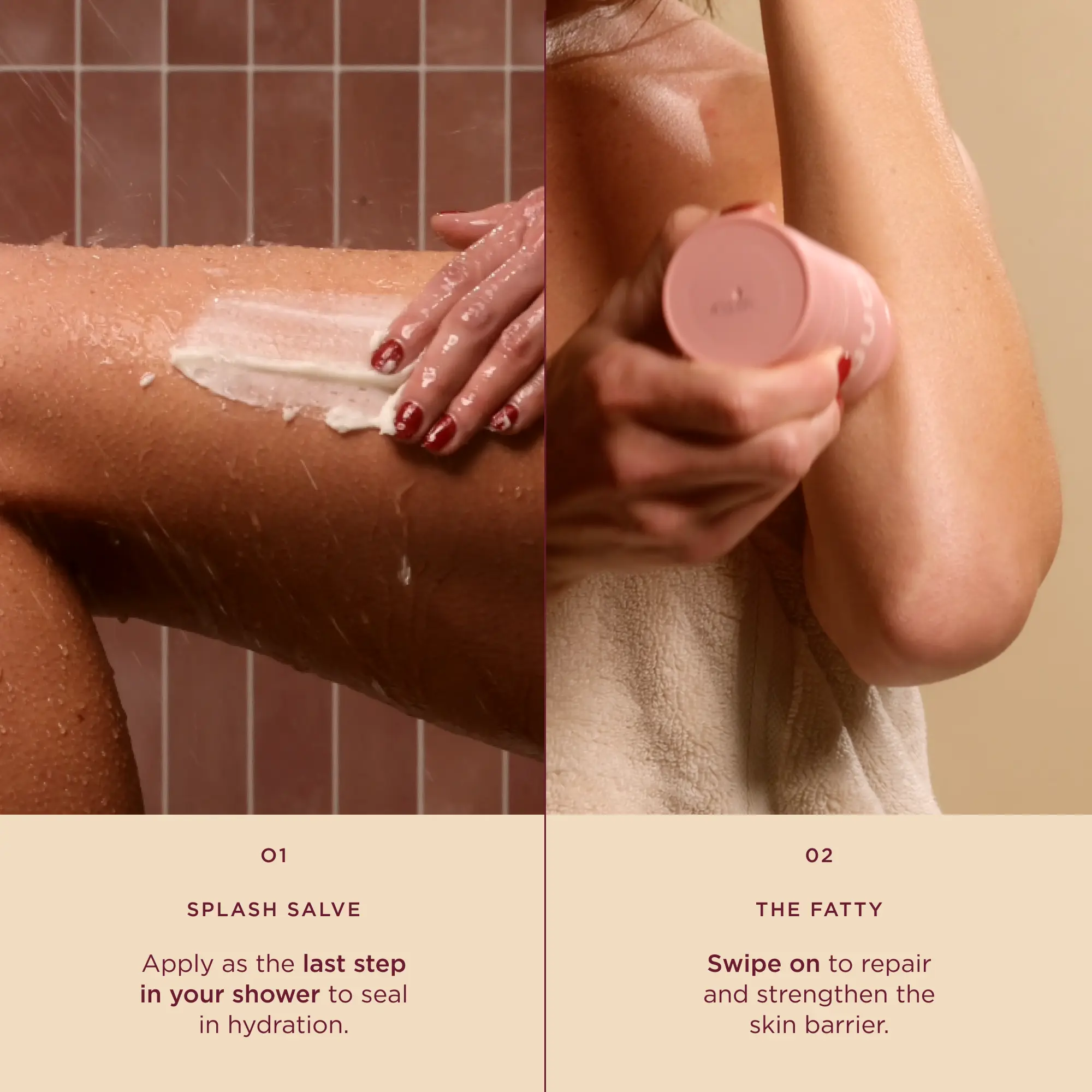I bought the bundle since I wanted the in shower salve and the fatty stick. I wanted something that I can use to moisturize in the winter. I love both products! The in shower salve is great since I can use it in the shower and I’m more likely to moisturize my body since I don’t have to get out of the shower to do it. Also, love the fatty stick for my elbows, knees, and feet. Lastly, it’s unscented so my skin isn’t irritated from it, which is a plus. I’ll definitely buy more from them!!