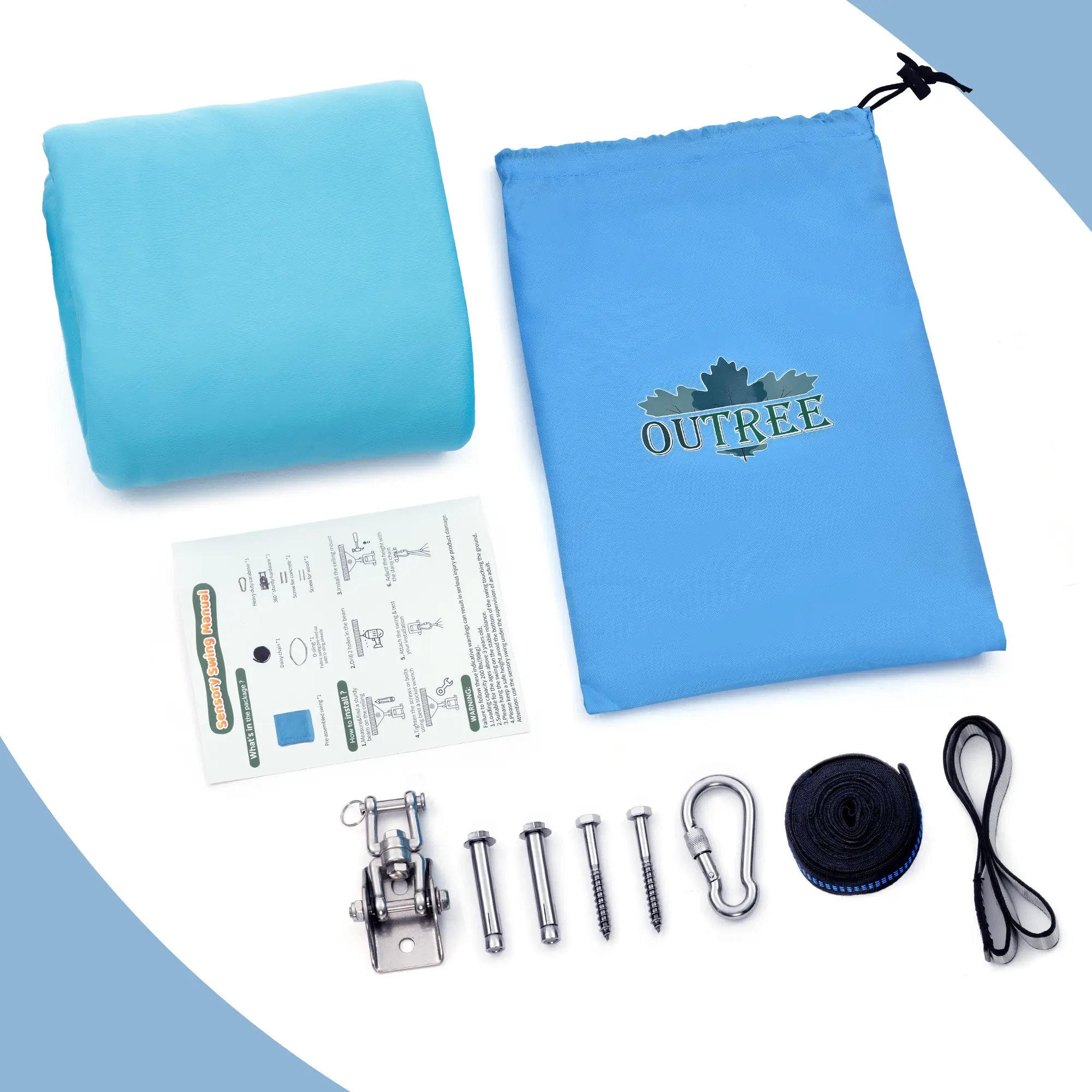 ·【GIFT & PORTABLE】-OUTREE therapy swing for kids indoor is a great gift option, the sensory swing is packaged in a small bag, easy to carry and storage. It's a good gift choice for anyone wanting a swing just for fun especially for sensory seekers.