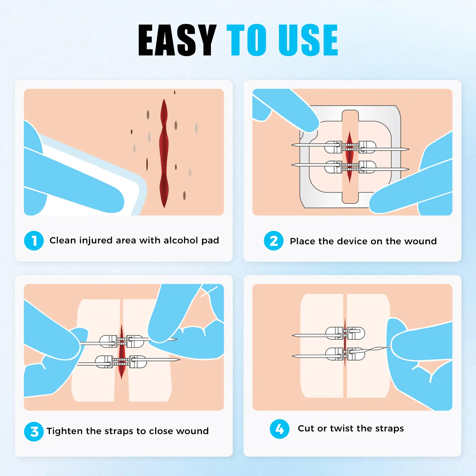 Sewless Closure: Our wound closure is no-sew needed, easy & painless to use. It helps reduce secondary trauma & scarring, enhances recovery & removal comfort, and effectively Reduce Scarring compared to traditional sewing