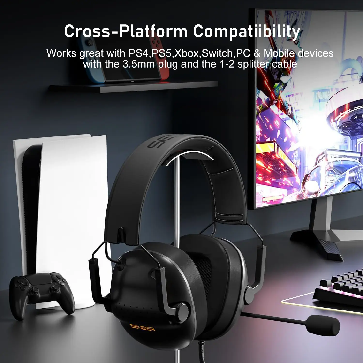 Setup is a breeze with plug-and-play compatibility across PC, PS4, PS5, Xbox One, Switch, and mobile devices via the 3.5mm jack. The dual USB connectivity lets you switch between devices without unplugging cables—perfect for multitasking.
