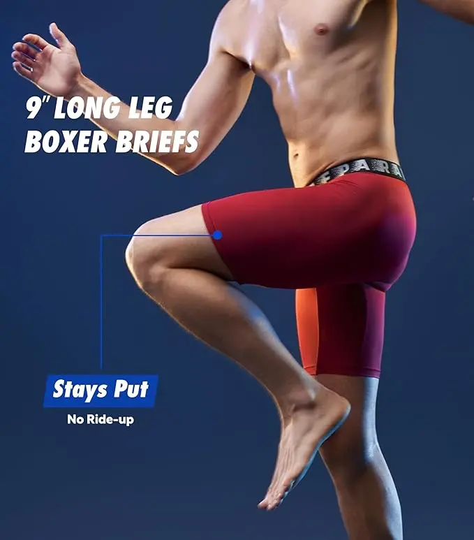 3 Packs Separatec Men's 9" Long Leg Boxer Briefs