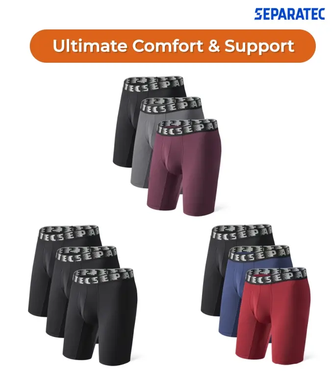 ·3 Packs: Separatec Men's 9" Long Leg Boxer Briefs with Separate Pouch