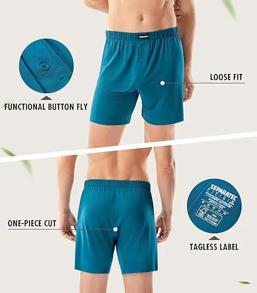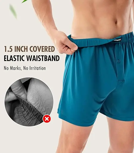 ·THOUGHTFUL DESIGN: Featuring flatlock seams, tagless labels, and a one-piece cut, these mens boxers minimize friction for a chafe-free fit. The functional button fly provides easy restroom access without compromising comfort or mobility.