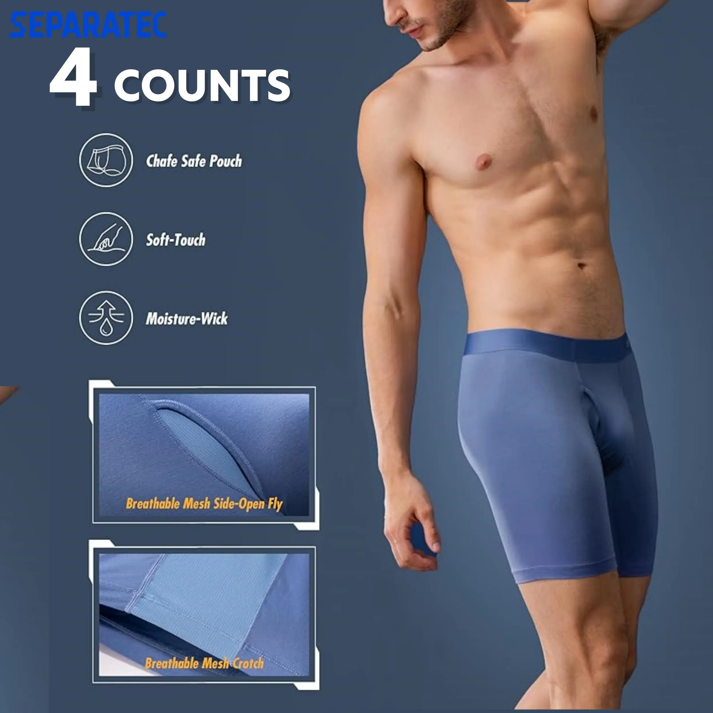 🌟 4 Packs Separatec Men’s Separate Pouch Modal Boxer Briefs 🌟