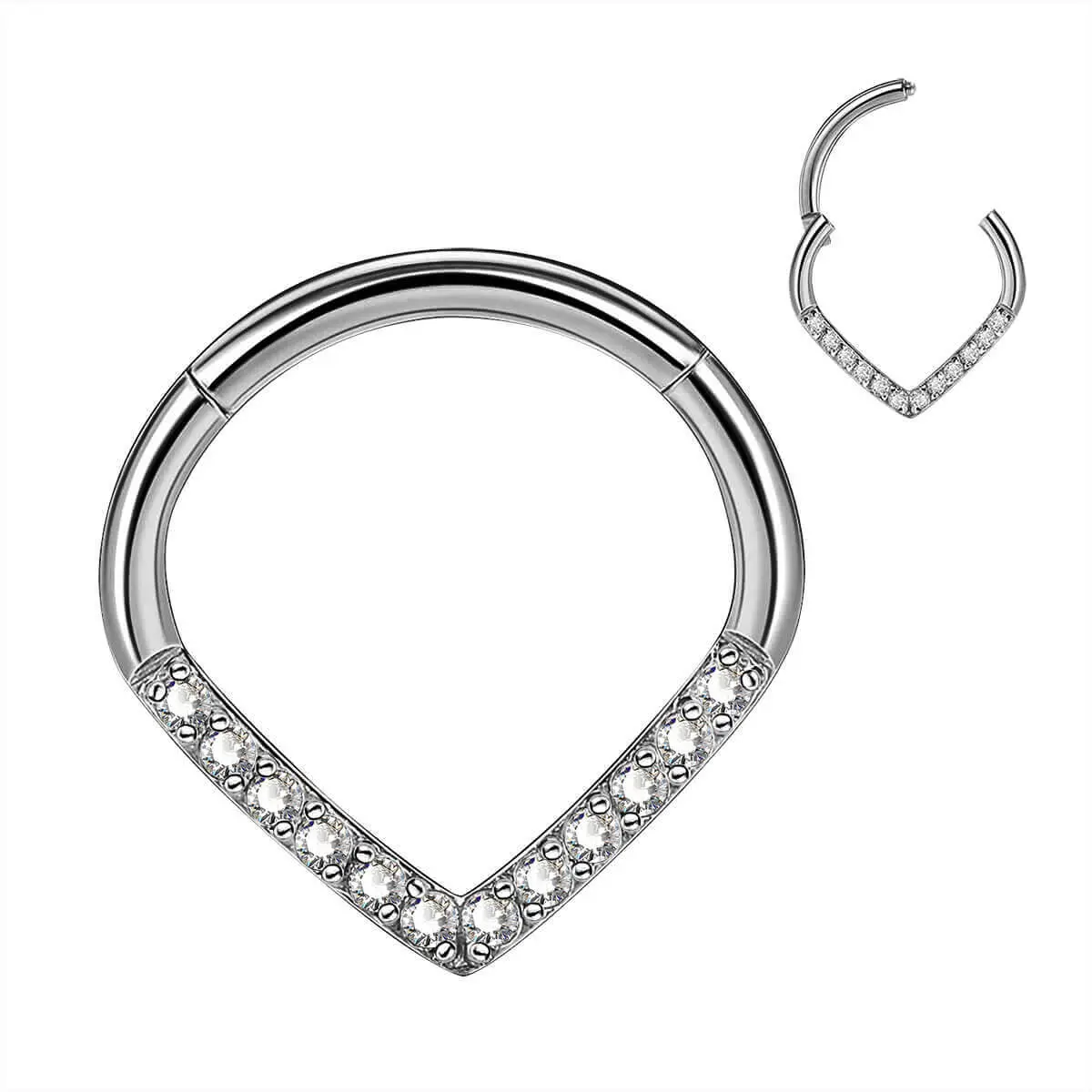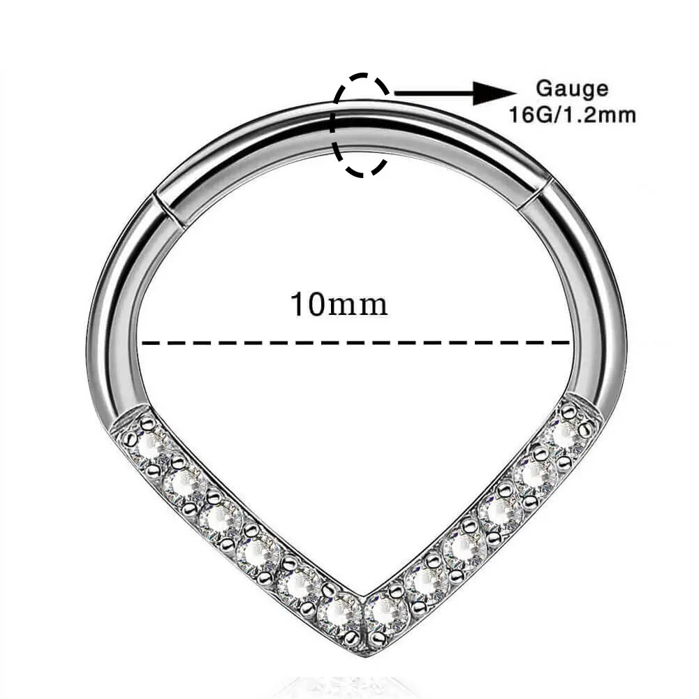 Oufer 16G V-shape Titanium CZ Septum Daith Piercing Ring Hoop Cubic Zirconia Grillz