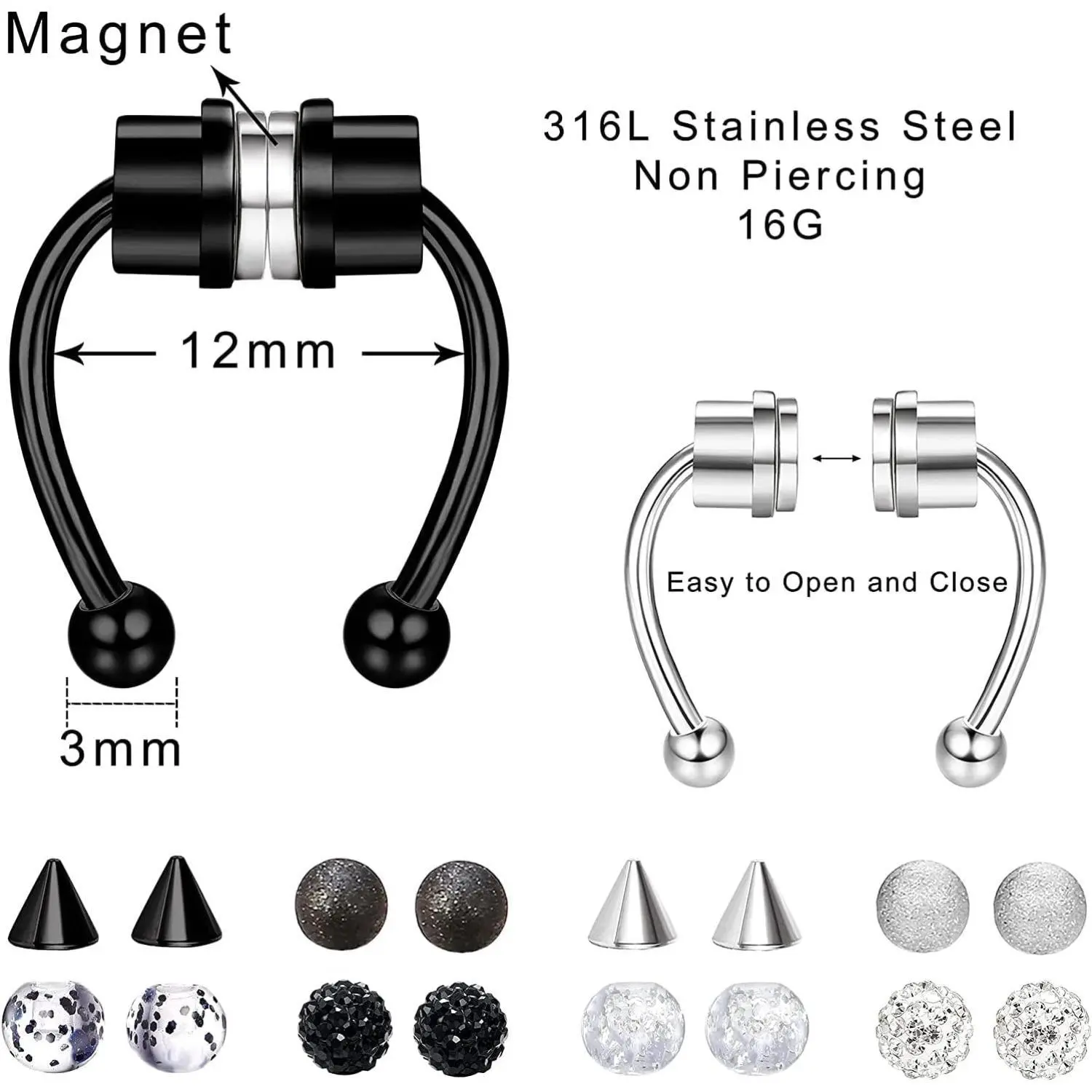 ·Versatile style: Suitable for both men and women, this faux septum ring hoop features a classic horseshoe shape that adds a trendy and edgy touch to any outfit.